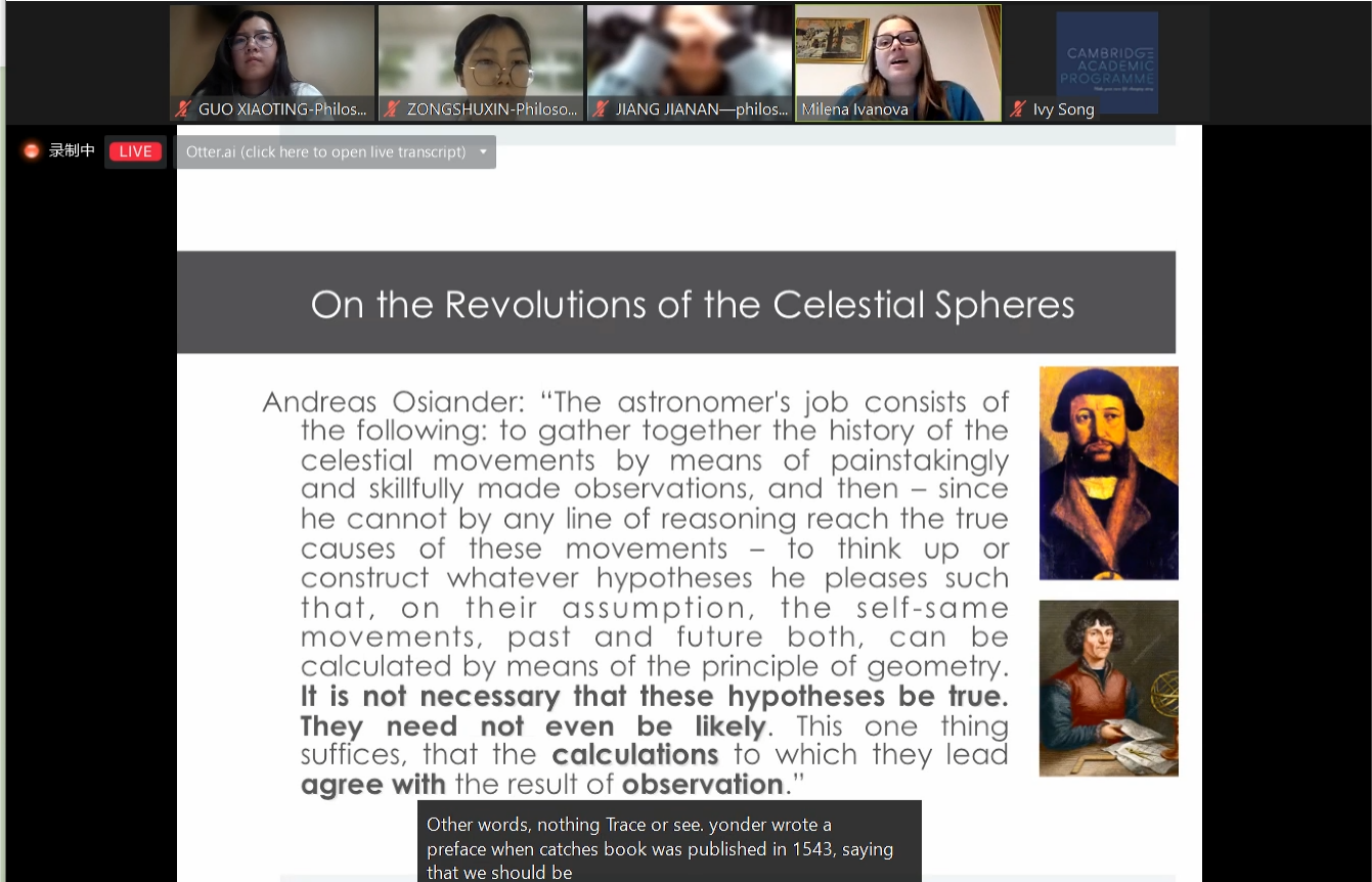 During the 2022 “Jilin University - Cambridge Academic Programme of more than one month, I’ve gained a lot. Not only have I gained a further understanding of philosophy of science and technology, but also improved my English directly. Besides, I mastered academic thinking and writing skills further, which will be of great help to my future research in related fields. What’s more, I also learned about the tutorial system in Britain, and how to train the critical thinking and reading methods of us students.