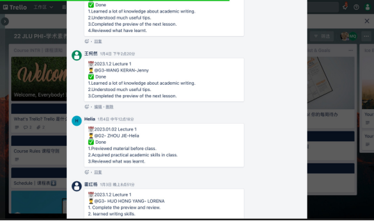 The content of the course is very informative, the professors were friendly and there were many interactive sessions in the program courses. The highly interactive course format not only encouraged students to actively participate in the class, but also gave us great opportunities to exercise ourselves. Through the communication in the program, I overcame my timidity and improved my speaking English. Unlike our traditional lecture-based learning style, we can gain a deeper understanding of knowledge through this mode of learning. And the project tasks mainly took the form of teamwork, which gave me the opportunity to meet many excellent partners, and in the process of mutual communication and cooperation, I not only improved my teamwork awareness but also gained deep friendship. Whats more, The program's reasonable course schedule and useful learning platforms, such as Zoom, Trello, allowed me to schedule my studies in a reasonable manner, which greatly improved my learning efficiency. The scientific study plan and the supervision of the teaching assistants ensured that I could complete the tasks assigned by professors with high quality and develop good study habits.
