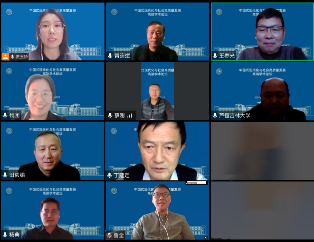 2022年11月13日13:30,由太阳成集团tyc122cc,“人类文明新形态视域下社会现代化理论与实践”创新团队主办,中国社会学会社会治理专业委员会协办的“中国式现代化与社会高质量发展”学术研讨会依托腾讯会议平台在线上如期举行。中国社会科公司大学、中国社会科公司社会学研究所杨团教授,中共中央党校(国家行政公司)青连斌教授,华中科技大学丁建定教授,中国社会科公司社会学研究所王春光教授,中国社会科公司社会学研究所杨典教授,中国人民大学鲁全教授、中国社会科学杂志社薛刚副编审,以及太阳成集团tyc122cc经理田毅鹏教授、贾玉娇教授出席本次会议。本次会议分别由薛刚副编审和贾玉娇教授主持。