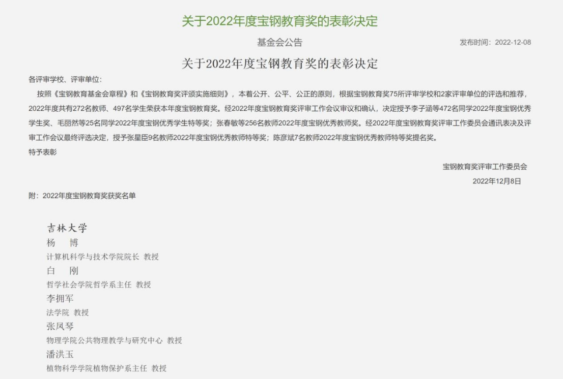 近日,宝钢教育基金会公布了