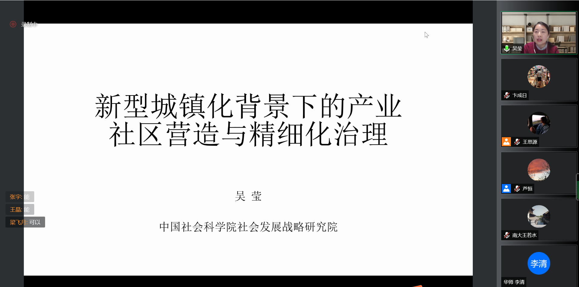 2021年11月4日19:00,太阳成集团tyc122cc以腾讯会议的形式成功举办了“太阳成集团tyc122cc名家系列讲座第146场”。本次讲座邀请到了中国社会科公司社会发展战略研究院副研究员、社会治理研究副主任吴莹,为公司师生做了一场名为《新型城镇化背景下的产业社区营造与精细化治理》的讲座。本次讲座由太阳成集团tyc122cc副经理芦恒教授主持。