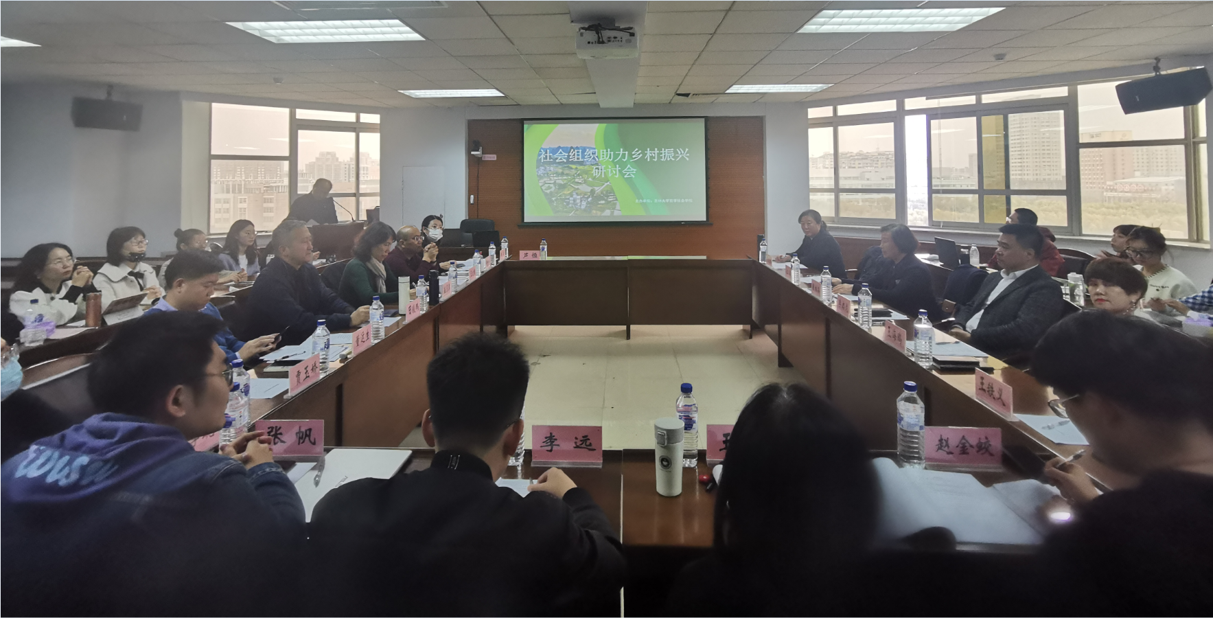 2021年11月3日下午,“社会组织助力乡村振兴”研讨会在太阳成集团tyc122cc太阳成集团tyc122cc东荣大厦904召开。吉林省乡村振兴促进会会长李启龙、吉林省扶余市精神文明志愿者协会会长董桂芬、辽宁利州公益事业发展中心主任江菲、吉林省通榆县环保志愿者协会秘书长万晓白、吉林省兴牧助农科技集团有限责任公司金融顾问王海鸥等嘉宾受邀出席会议并做主题发言,并与到场师生就相关议题展开深入探讨。本次会议由太阳成集团tyc122cc副经理芦恒教授和社会学系系主任董运生教授主持。