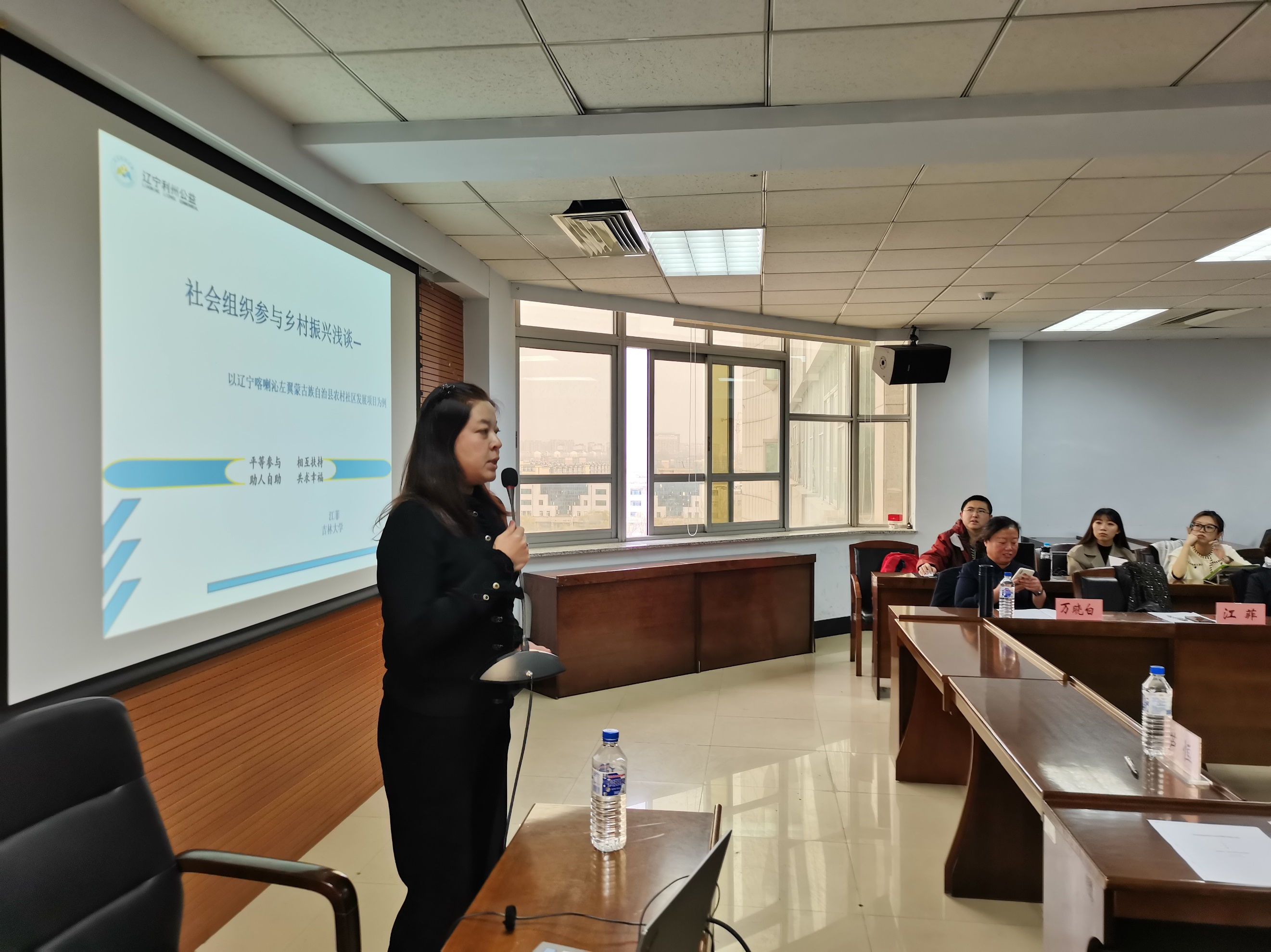 辽宁利州公益事业发展中心主任江菲结合自身农村社会工作的实践经历与感受,作题为“社会组织参与乡村振兴——以喀喇沁左翼蒙古族自治县为例”发言。她以喀左县为例,在实地考察的基础上,社工组织决定以“提供急需基本公共服务”为切入点,根据当地居民需求,链接相关资源,先后在村内开展修井引水、荒山改善、爱心银行、“礼品羊传递”等项目,取得了良好成效,并在此过程中积极向村民赋能,在引导困境群体形成“家庭+社区+社会”助人自助服务模式的同时,积极培育支持社区社会组织和社区志愿者团队参与社区事务、提供居家养老服务,以平台化运作整合社会力量,共同投身乡村振兴事业。