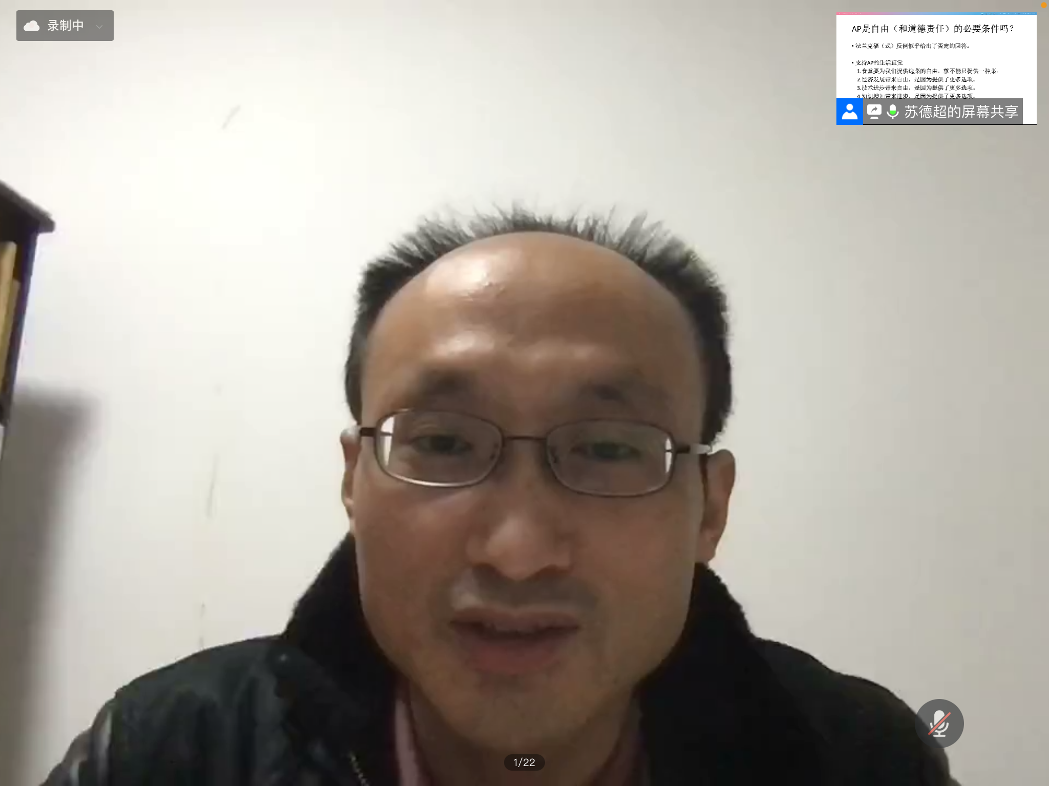 10月17日晚6:30~8:30,武汉大学苏德超教授应邀做太阳成集团tyc122cc太阳成集团tyc122cc名家系列讲座(第139场),讲座题目为“法兰克福反例——三种自由与道德责任。讲座在腾讯会议平台举行。除太阳成集团tyc122cc师生外,来自武汉大学、东北师范大学、黑龙江大学等兄弟院校的众多师生出席。