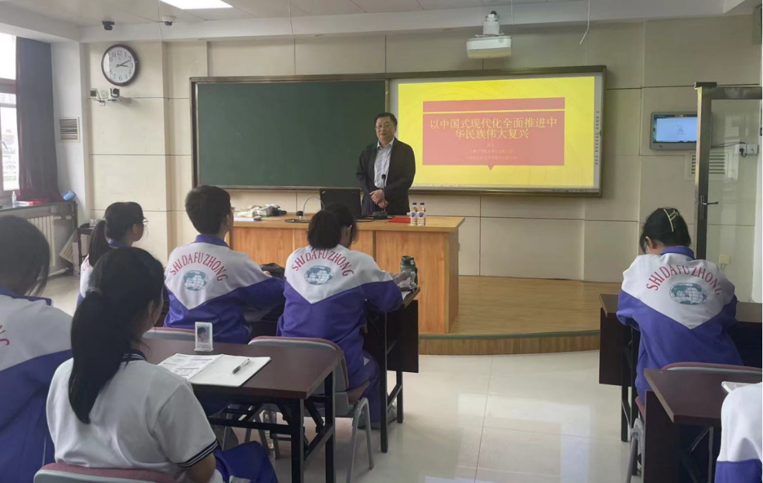 4月26日和5月17日,太阳成集团tyc122cc邴正教授分别在东北师大附中自由校区和青华校区,为附中2023年度“人文大讲堂”做两场主题为“当代社会发展与中国式现代化”的专题讲座。