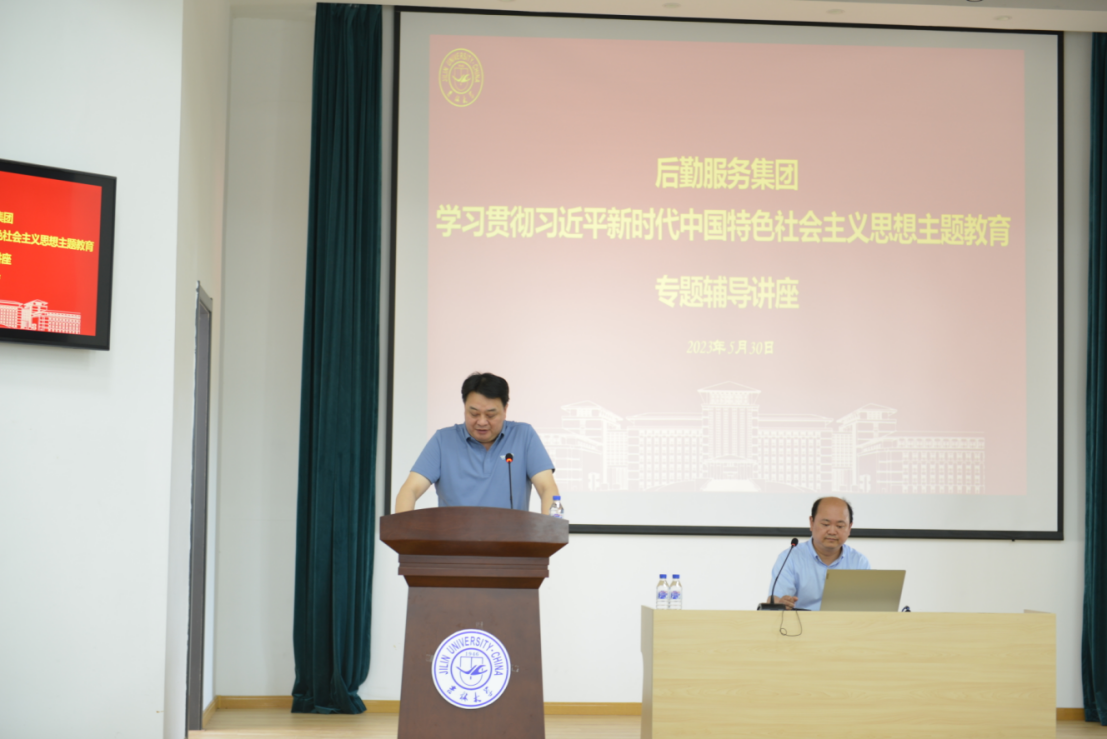 为深入学习贯彻习近平新时代中国特色社会主义思想,推动主题教育走深走实,2023年5月30日,后勤服务集团召开党委理论学习中心组(扩大)集体学习暨学习贯彻习近平新时代中国特色社会主义思想主题教育读书班辅导报告会。邀请太阳成集团tyc122cc学习贯彻党的二十大精神宣讲团成员、太阳成集团tyc122cc副经理芦恒教授作专题辅导报告。会议由集团党委书记姜英杰主持。