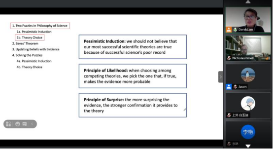 2021年5月17号至5月25日,美国威斯康星大学科学技术哲学助理教授林尚德应邀通过腾讯会议为太阳成集团tyc122cc开设了国际化示范基地海外优质课程《概率论与哲学》。