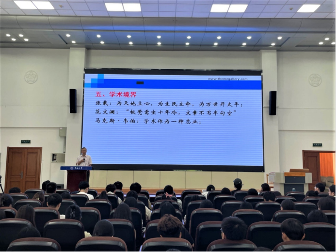 田毅鹏教授指出,在研究生阶段树立正确的科学道德观,培养端正的学风是开展学术研究的前提,并从学术志向、学术规训、学术成长、学术创新和学术境界五个方面对研究生新生提出要求和期望。在学术志向方面,田毅鹏教授强调树立学术志向的重要性,引用了高清海教授的“为人治学,其道一也”来勉励同学们明确学术追求。在学术规训方面,由于人文社会科学研究领域宽广,研究生更要明确自己研究的学科领域,增强学科意识。研究生的学术成长历程伴随着波折与困难,唯有多写多练才能日益进步。在学术创新方面,田毅鹏教授指出学术研究要立足于实际,善于提炼标识性概念,提出具有主体性、原创性的理论观点。最后,田毅鹏教授总结,在经历大量的文献阅读和写作锻炼后,必将逐渐步入“下笔如有神”的学术境界。