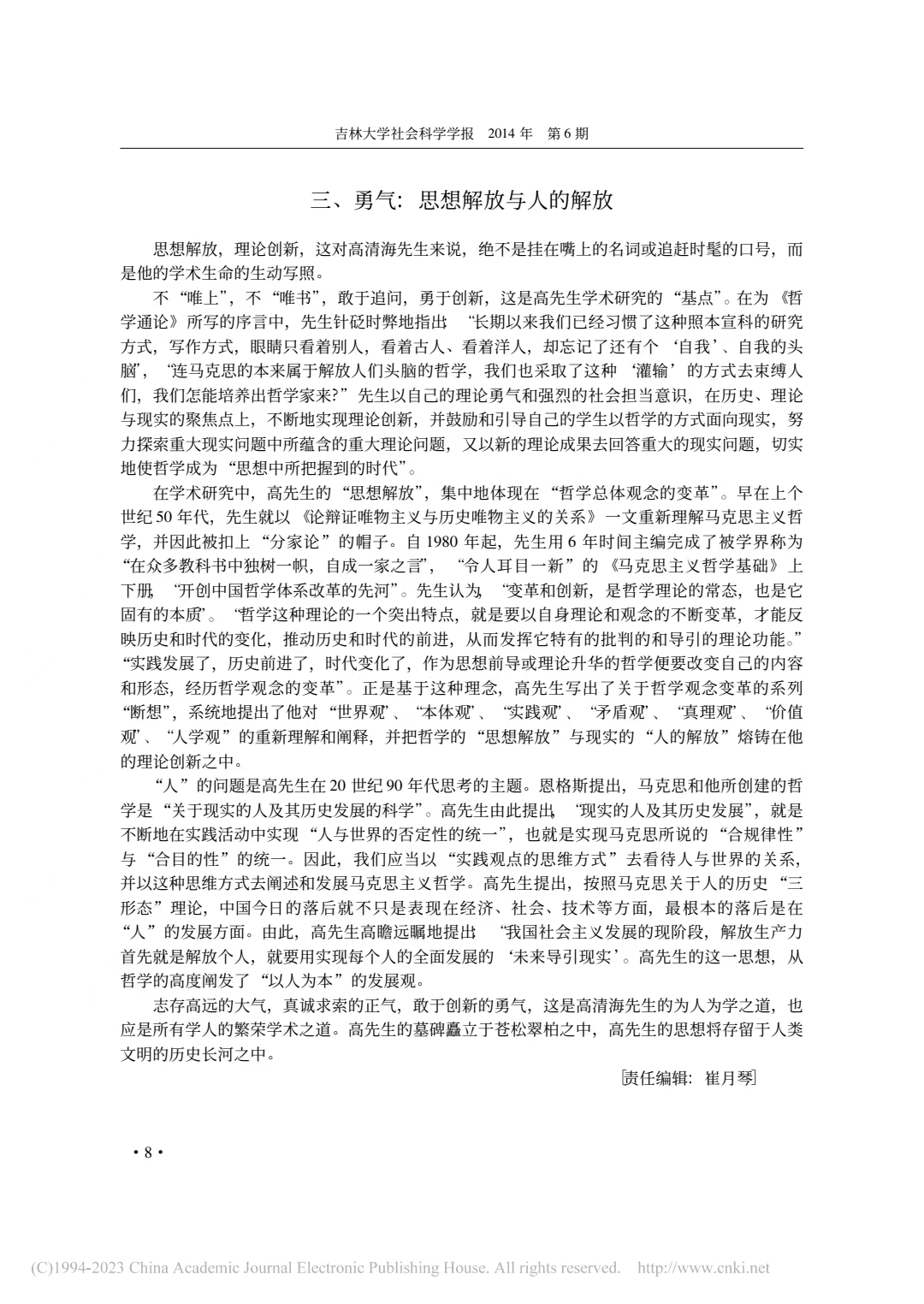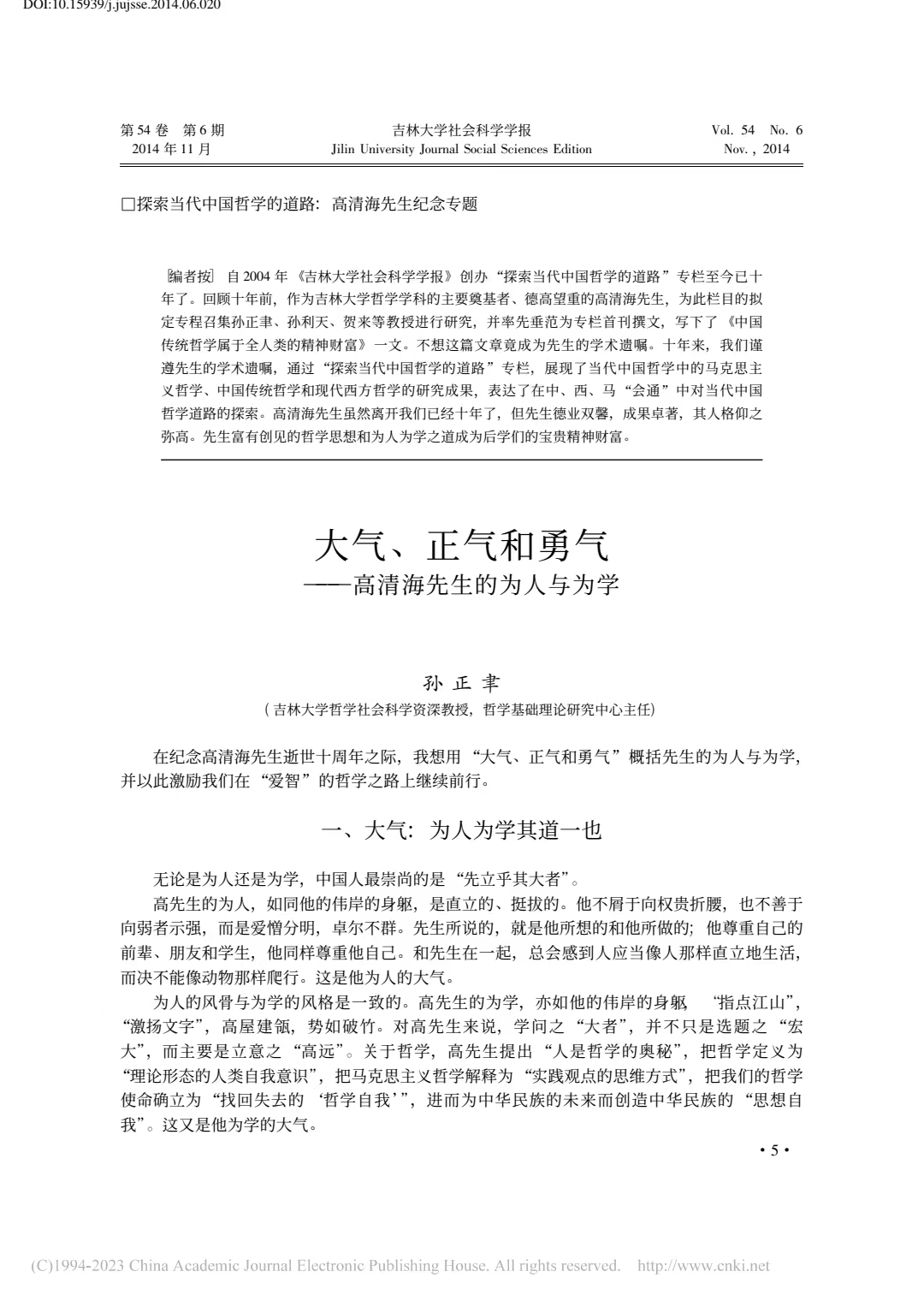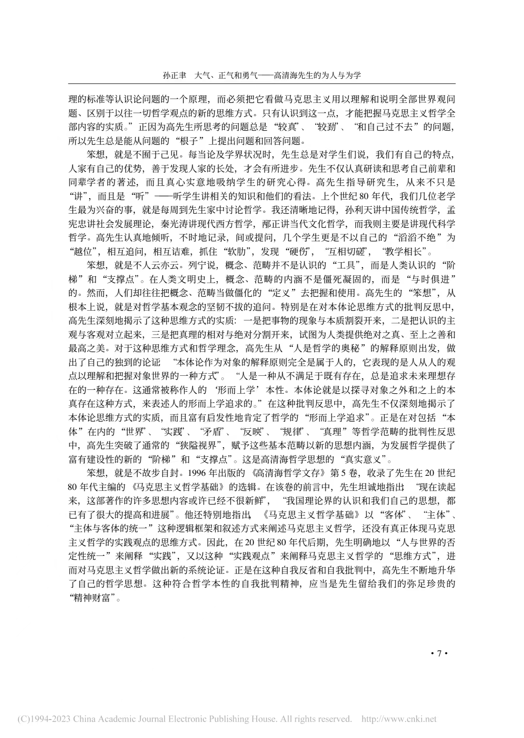 孙正聿:大气、正气和勇气 —— 高清海先生的为人与为学