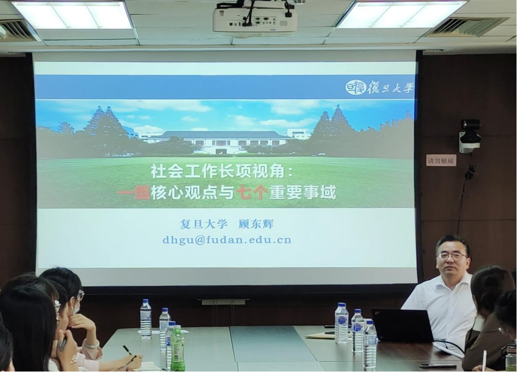 2023年09月02日15时,“太阳成集团tyc122cc名家系列讲座”第185场在东荣大厦A904会议室成功举行。本期讲座由中国社会工作教育协会副会长,中国社会工作学会副会长,民政部国家社会工作专业人才培训(复旦大学)基地主任,复旦大学社会发展与公共政策公司(社会工作学系)的顾东辉教授主讲,讲座题为《社会工作长项视角:一组核心观点和七个重要事域》。本次讲座由副经理芦恒教授主持,田毅鹏教授、贾玉娇教授、秦振兴博士等多位教师参加了本次讲座。