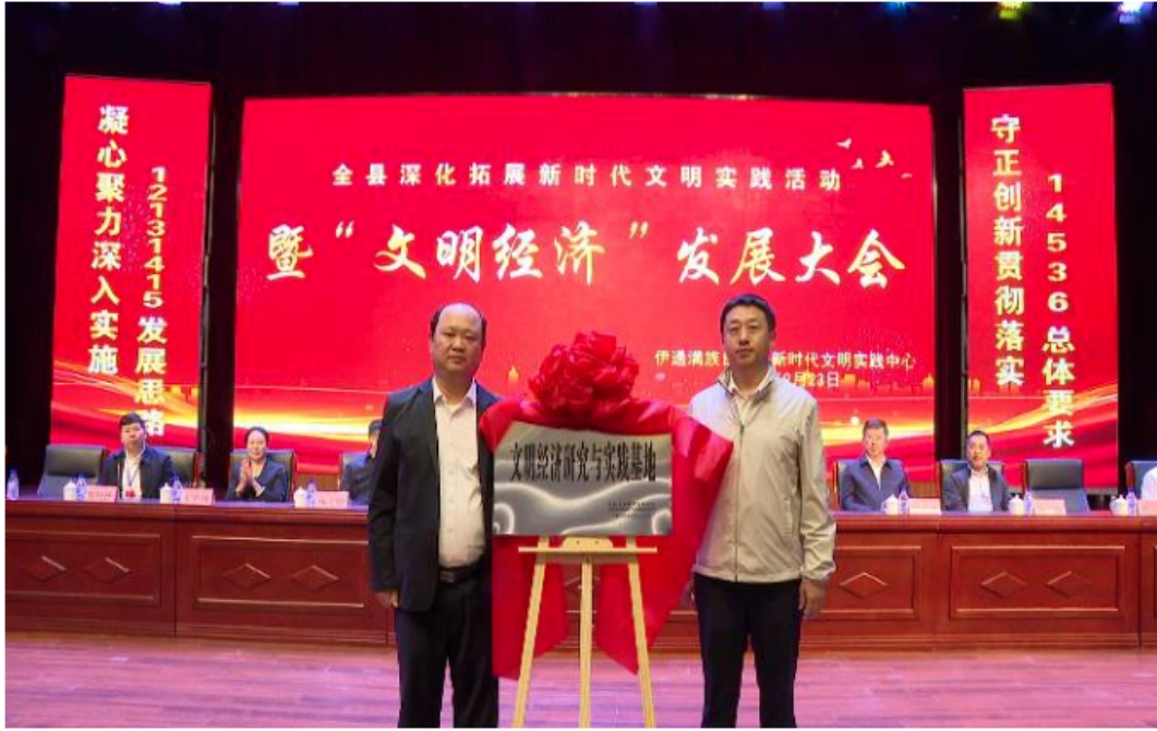 为深入贯彻习近平总书记在二十大报告中关于以辩证、全面、系统、协调的观点正确处理物质财富和精神财富协调发展关系,推动高质量发展的重要论述。经公司与吉林省四平市中共伊通满族自治县委宣传部友好协商,联合建立“文明经济研究与实践基地”,共同开展经验提炼、志愿服务数据库建设等科研项目。2023923日,副经理芦恒教授参加伊通县深化拓展新时代文明实践活动暨“文明经济”发展大会,与四平市委宣传部副部长吕凡共同为“文明经济研究与实践基地”揭牌。中国社会科公司、中央党校、中国农业大学、广东青年政治公司、吉林师范大学、长春工业大学、吉林省志愿服务联合会等专家学者参加此次大会。