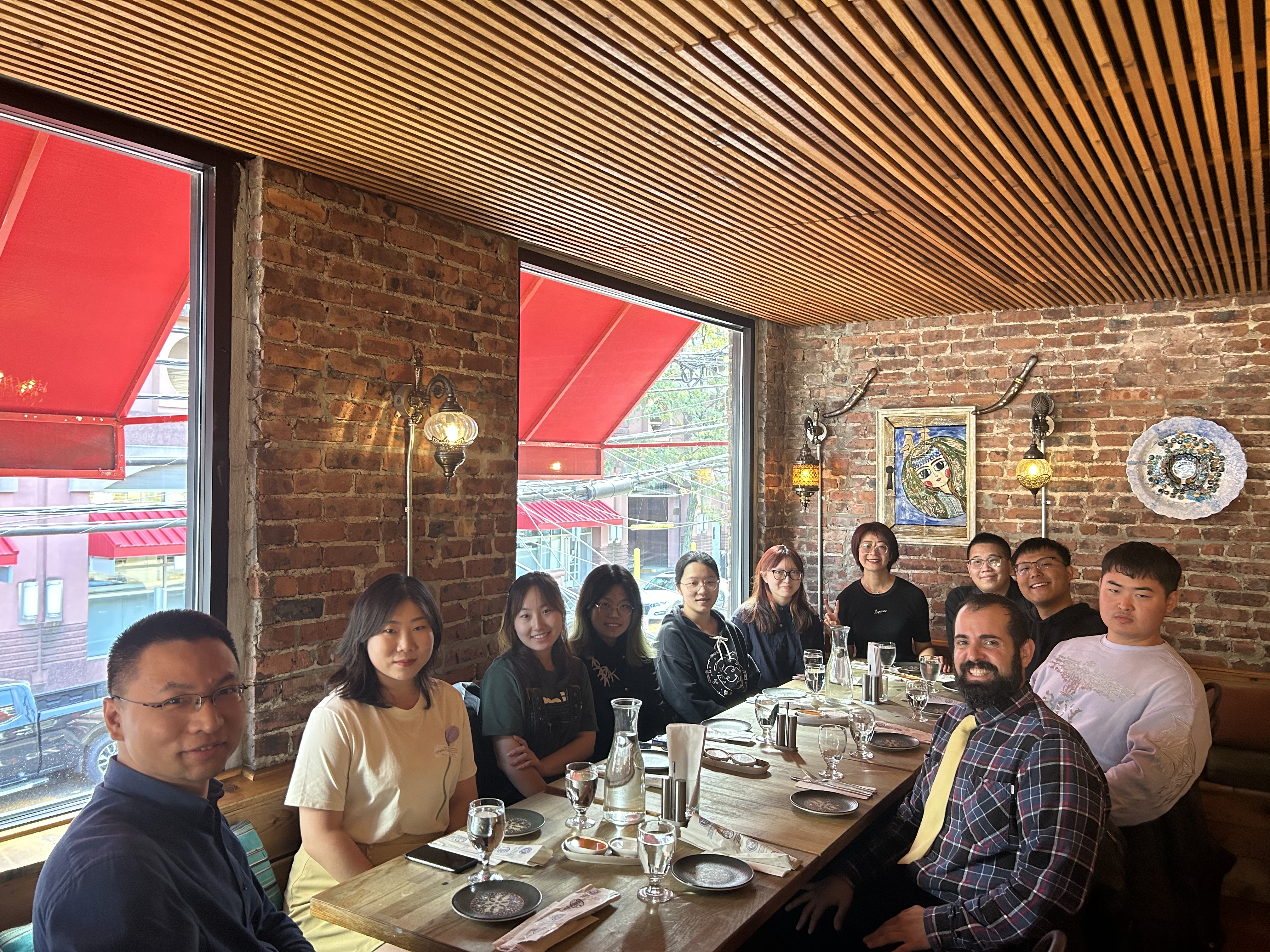 中午,此行师生应邀与Christopher Rivera教授Shuman Wen老师在土耳其餐厅共进午餐。席间,氛围轻松愉快,老师、同学们畅所欲言,分享学术心得、文化见解与所见所闻。这次聚餐不仅使师生们领略了充满异域风情的土耳其文化,品味到了独特的土耳其佳肴,更推动了师生间的互动,加深了两校间情感与文化的羁绊。