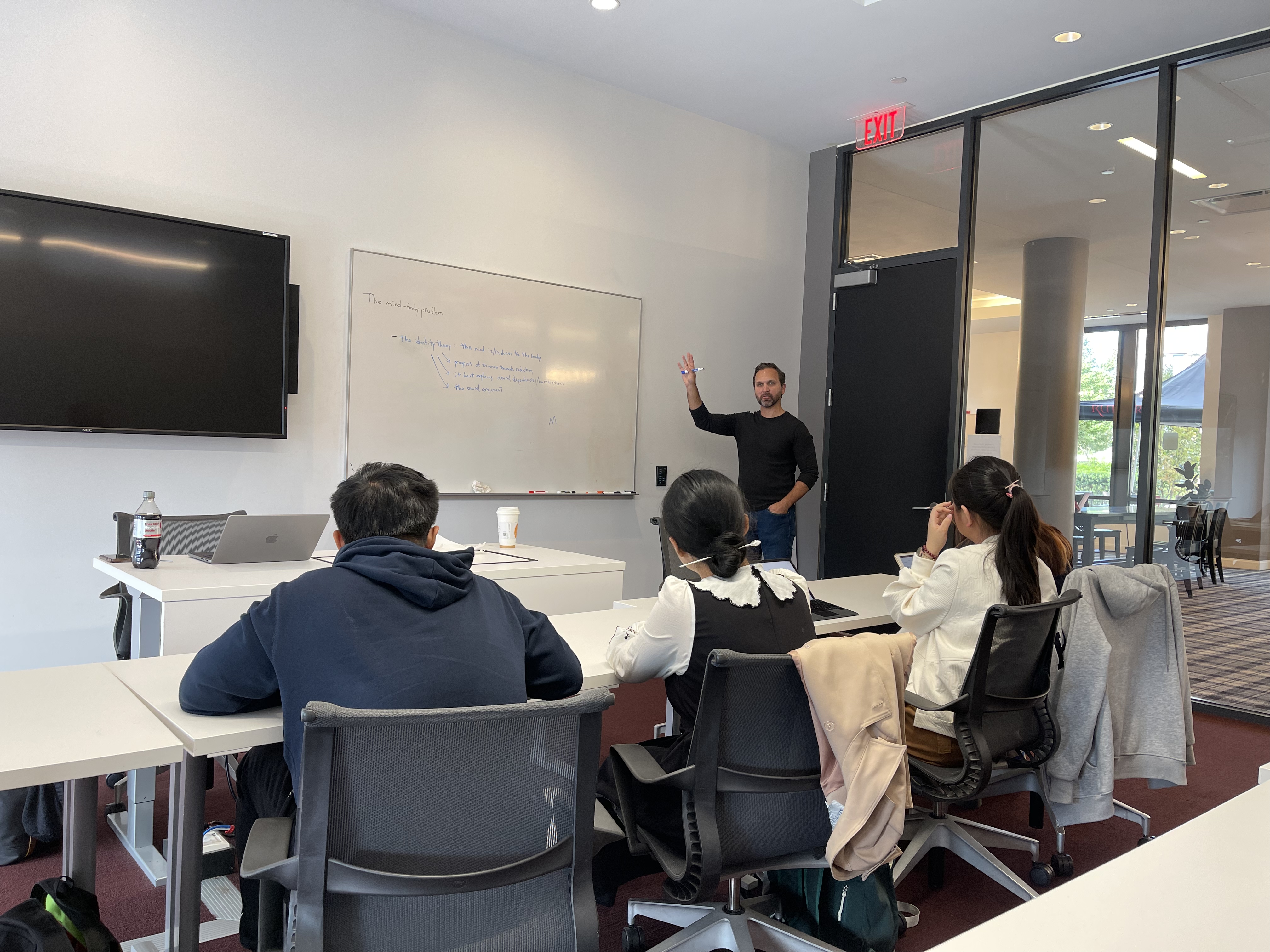 在经过周末的休整同学们开启新一周的学习。当地时间1016日上午,罗格斯大学哲学系教授 Alexander Skiles在荣誉公司讲授了以Philosophy of Mind心灵哲学为主题的学术讲座。