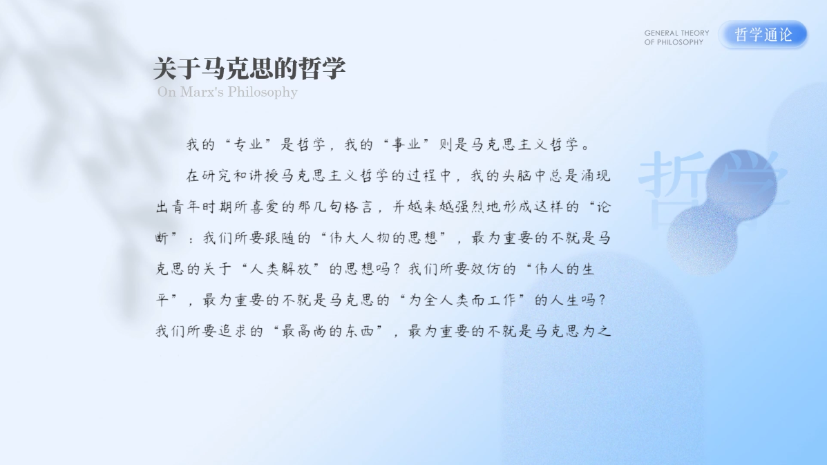技术升级展现“哲学美”。在教材的配套资源中加入由孙正聿教授原创并亲自配音的诗歌散文视频,立体展现孙正聿教授的人格与学术魅力,拉近读者与大师之间的距离,使读者能更加深切地体会到哲学之美,生发出哲学之爱,形成强烈的“爱智之忱”,从而进入真切的哲学思考。