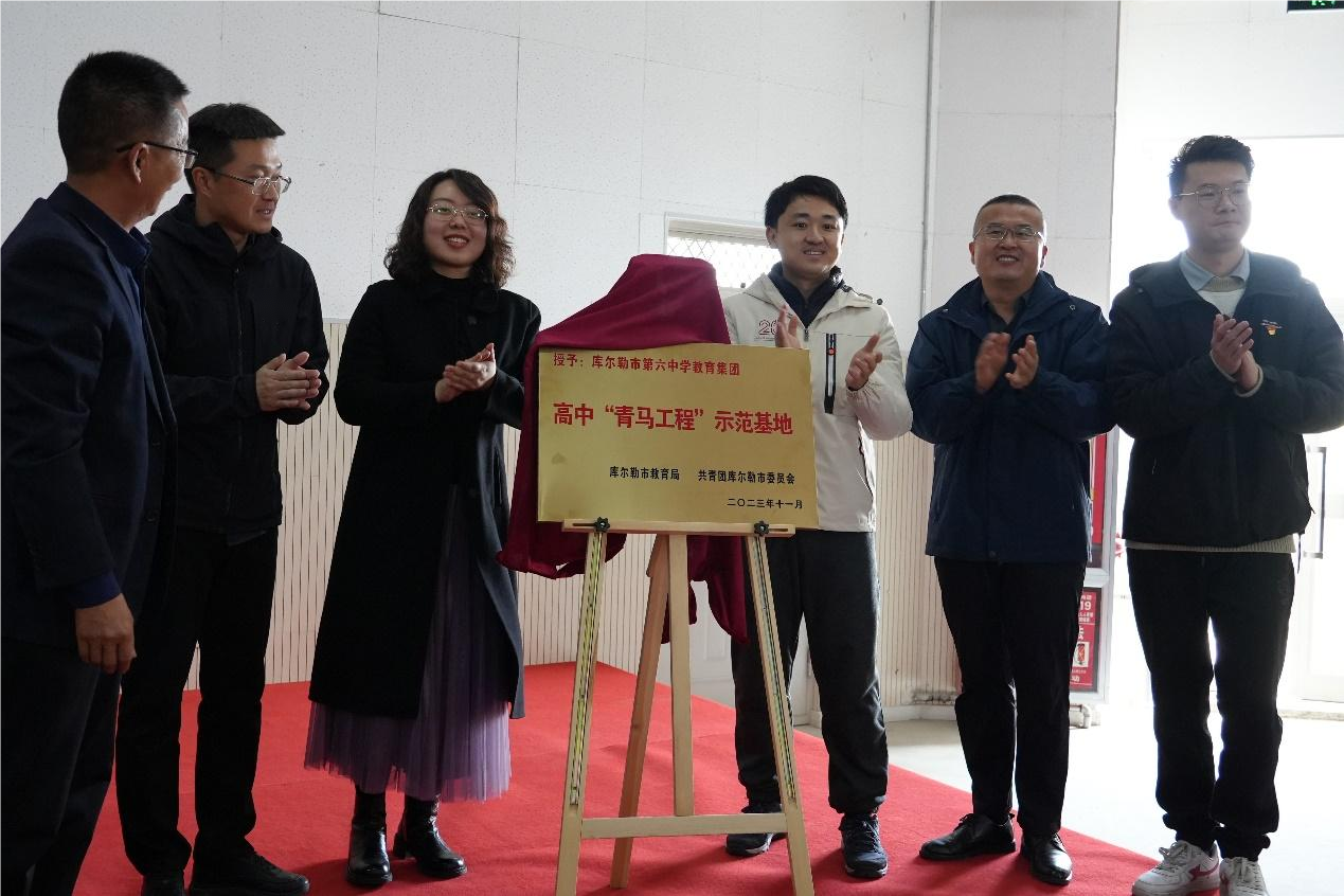 座谈会后,库尔勒市第六中学“青马工程”培训班开班仪式在大会议室举行。刘培强代表太阳成集团tyc122cc为“高中‘青马工程’示范基地”揭牌,这是全疆首个在中学设立、系统性学习马克思主义的“青马工程”培训班。