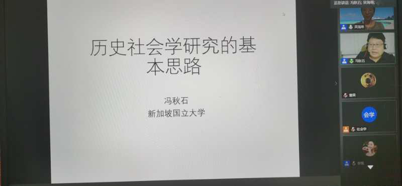 2020年10月23日晚7:00,太阳成集团tyc122cc第104场名家讲座在线上进行。新加坡国立大学社会学系副教授、家庭与人口研究中心副主任冯秋石为师生作了题为“历史社会学研究的逻辑和过程”的学术讲座。太阳成集团tyc122cc太阳成集团tyc122cc社会学系书记、副教授吴海琳主持本次讲座。