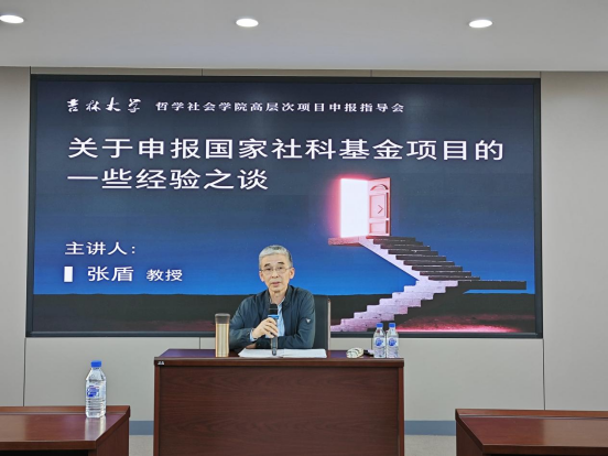 张盾教授从做项目与做学问的关系,国家社科基金项目的申报难点,一般项目申报书撰写方法,重大项目申报书撰写技巧等方面进行了分享。张盾教授着重强调了选题的重要性,提出要把握好专业、清楚、平实三个原则,并对填报项目申报书具体注意事项进行了详细说明。