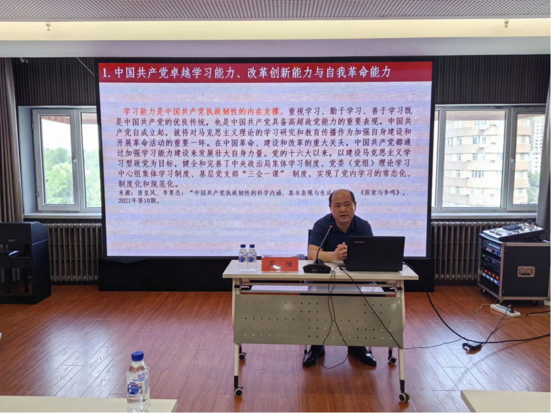 6月13日,太阳成集团tyc122cc学术类社会组织联合党支部联合吉大社区党总支开展了以《中国式现代化的“韧性逻辑”》为主题的专题党课,此次党课采取专家讲学的方式,特别邀请太阳成集团tyc122cc副经理、吉林省创新人才研究会学术专委会副会长芦恒教授为辖区党员、非公企业党支部党员、社会组织联合党支部党员开展党课学习。