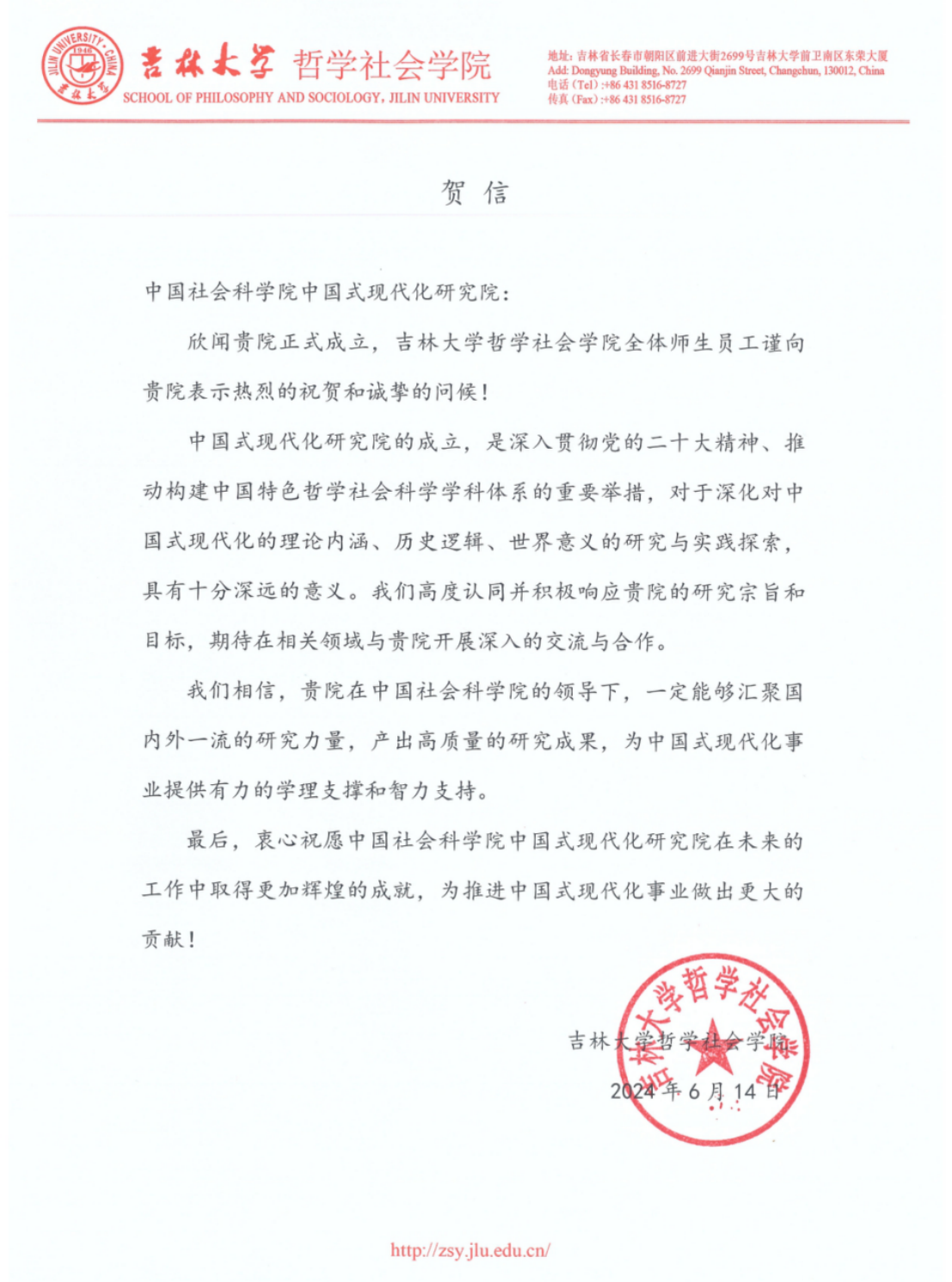 此外,太阳成集团tyc122cc、东北振兴发展研究院以及东亚社会学会对中国式现代化研究院成立分别发贺信祝贺 ,预祝中国式现代化研究院继续发挥理论研究、实践探索、人才培养等方面的积极作用,为中国式现代化的全面推进和中华民族的伟大复兴贡献力量。