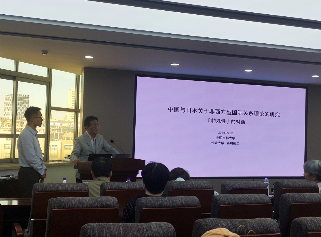 森川教授的主要研究方向为国际政治学,他首先为同学们介绍了历史上主流的国际政治学理论,然后讲解了肇始自明治维新时期的日本国际关系理论,以及在二战前后的发展倾向及特点。