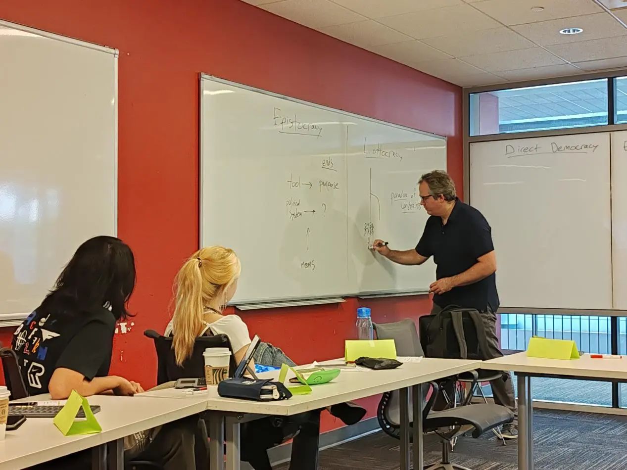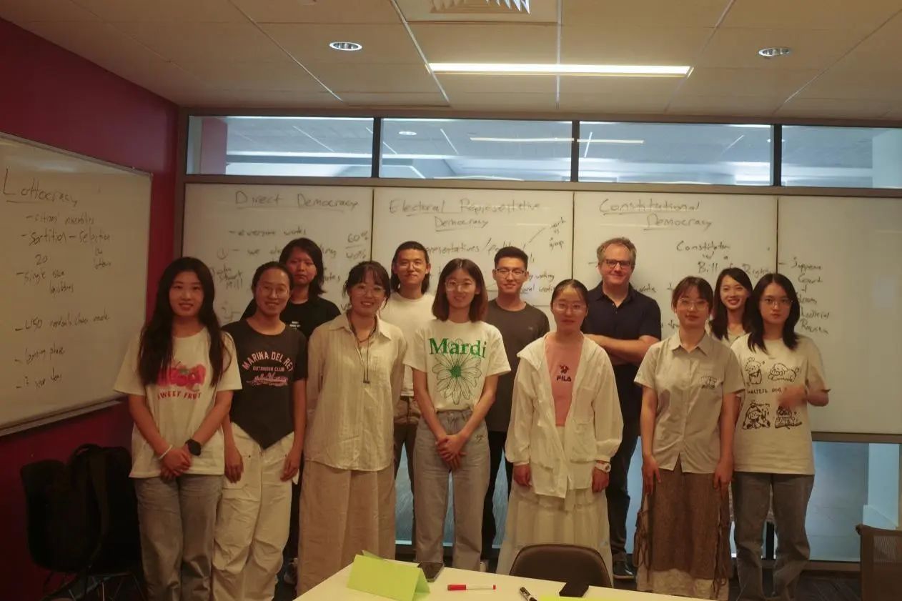 本次暑期公司的第一堂课是Alex Guerrero教授的当代政治哲学讲座。Guerrero教授首先从工具性、正义性、公平性等方面,介绍了对政治系统的不同评价标准,接着,教授对直接民主、选举代表民主、宪政民主等几种基本民主政治形式进行了讲解。其中,精英选举制度的可行性与公平度问题引起了师生们的热烈讨论,同时,哲学史上经典的“电车难题”以及由此引申出的政治目的与手段的正当性问题也受到了师生们的关注。Guerrero教授在讲座中引入自己的最新研究主题——Lottocracy(抽签民主),打开了同学们的视野,这种民主形式不仅具有公平性上的优势,在当代政治中也不乏操作的可能性。