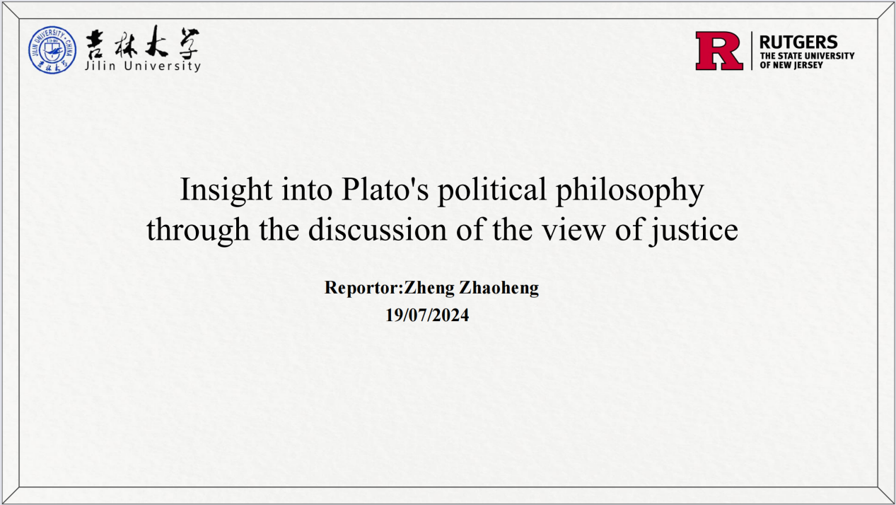 本次汇报以柏拉图的正义观为切入点深入探讨了柏拉图的政治哲学。汇报概述了以柏拉图为代表的理想主义政治思想的正义观,强调了哲学家王在柏拉图理想构建中的重要地位。进一步的,对比了古代西方和古代中国的政治哲学,指出古希腊思想中哲学指导与改造政治的观点和中国传统哲学中君主统治特点的不同。最后强调了哲学对政治的持续影响以及每种哲学传统的独特属性。