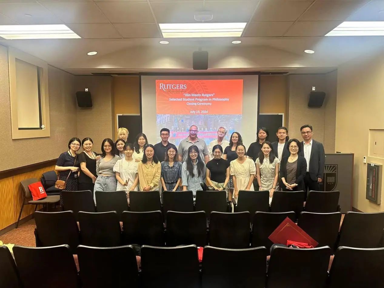 最后,罗格斯大学全球事务助理副董事长Ji-Yeung Jang博士和罗格斯大学哲学系主任Karen Bennett教授为每位同学授予了结业证书,师生们进行合影,结营仪式圆满结束。