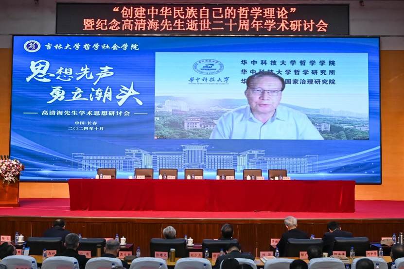 华中科技大学哲公司教授、原党委副书记欧阳康在视频发言中指出,高清海先生是当代中国马克思主义哲学界最富于开拓意识和创新精神的哲学家之一,他努力找回失去的“哲学自我”,彰显哲学创新的生命本性,构建起了一个具有鲜明自主知识特色的哲学体系,也正是通过哲学创新,高先生的哲学学术生命展示出强大的活力和魅力。