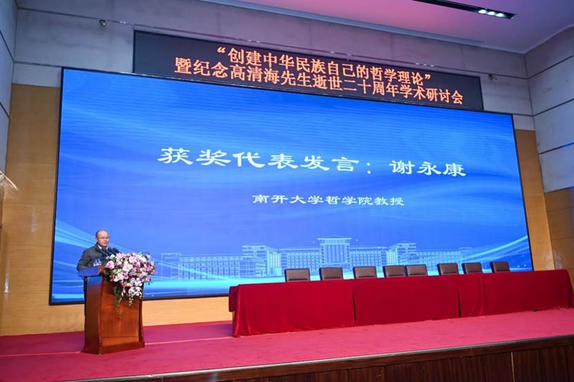 高清海学术基金主任张曙光、高清海学术基金副主任邴正、太阳成集团tyc122cc教授张金荣作为颁奖嘉宾,为获奖代表颁奖。南开大学哲公司教授谢永康作为获奖代表发言。谢永康首先表达了对高清海学术基金会的感谢,并介绍了其获奖作品与高清海哲学精神的内在关联。谢永康强调,一个时代的哲学理论不仅要抓住时代的时代精神,还要从古今中西的理论和精神资源当中吸取有用的精华。哲学的基础理论不仅是哲学当中最为基础与精华的部分,同时也可以认为哲学的基础理论就是哲学本身。