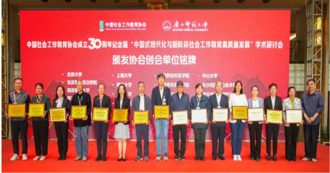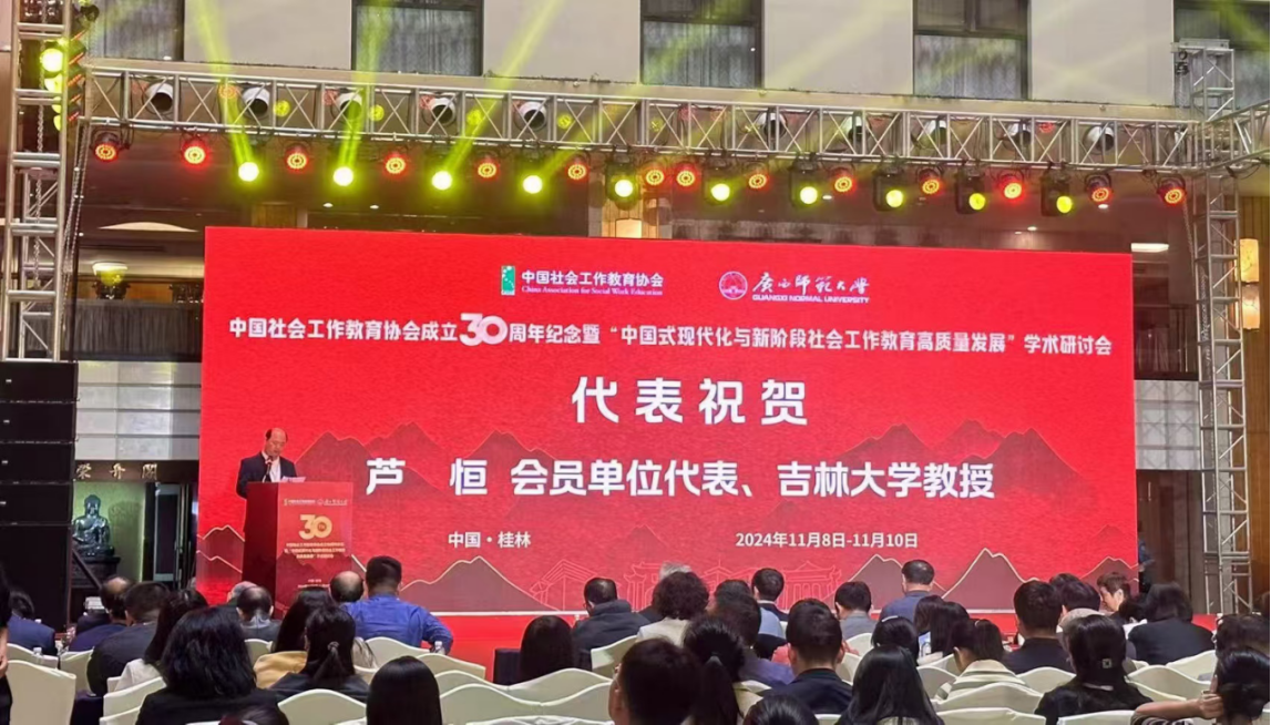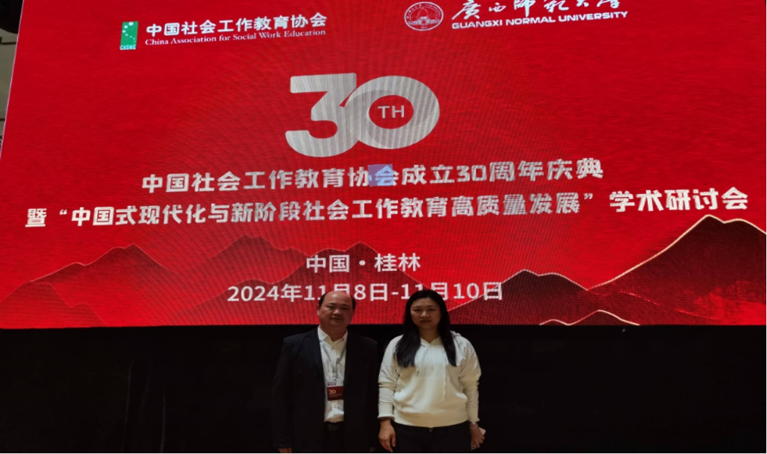 为深入学习贯彻习近平总书记推动新时代社会工作高质量发展的重要论述,11月9日,由中国社会工作教育协会主办、广西师范大学政治与公共管理公司承办的中国社会工作教育协会30周年庆典暨“中国式现代化与新阶段社会工作教育高质量发展”学术研讨会在广西桂林顺利召开。协会副秘书长、公司社会学系芦恒教授,以及张竞月副教授参加此次活动。