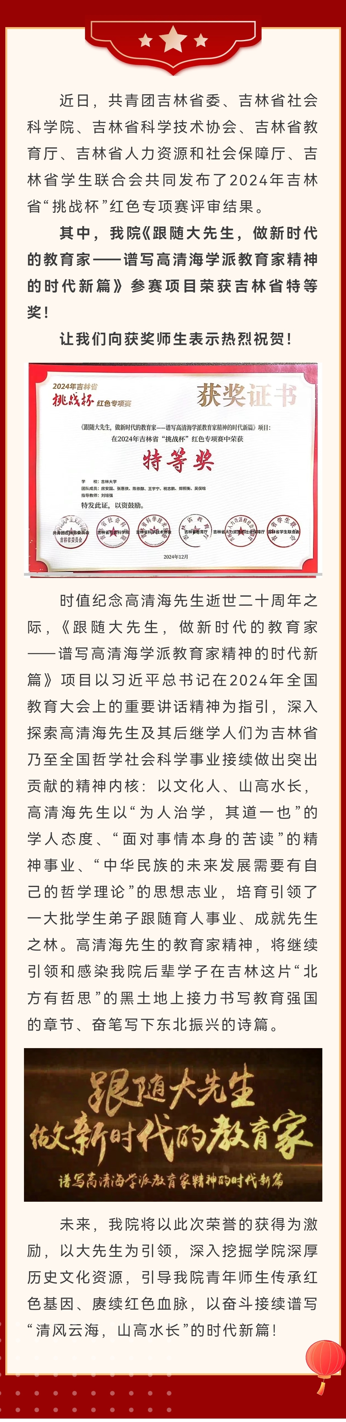 喜报|公司在2024年吉林省“挑战杯” 红色专项赛中斩获特等奖!