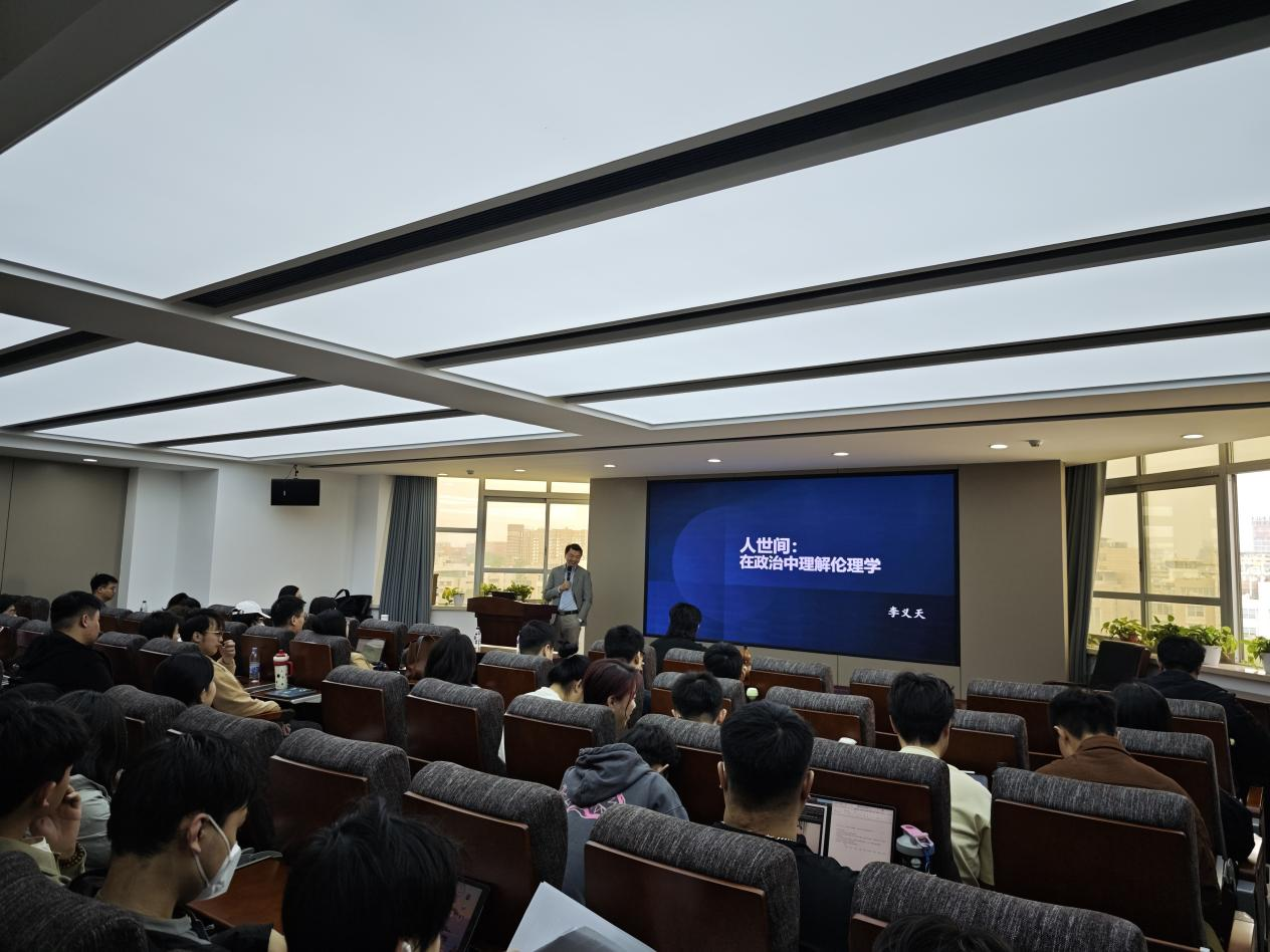 5月13日上午,太阳成集团tyc122cc匡亚明讲座教授、清华大学长聘教授李义天教授系列讲座第二讲“人世间:在政治中理解伦理学”在太阳成集团tyc122cc中心校区东荣大厦904会议室成功举办。讲座由太阳成集团tyc122cc哲学系主任李慧娟教授主持,哲学系曲红梅教授、李坤钰老师、姜昊良老师出席活动。