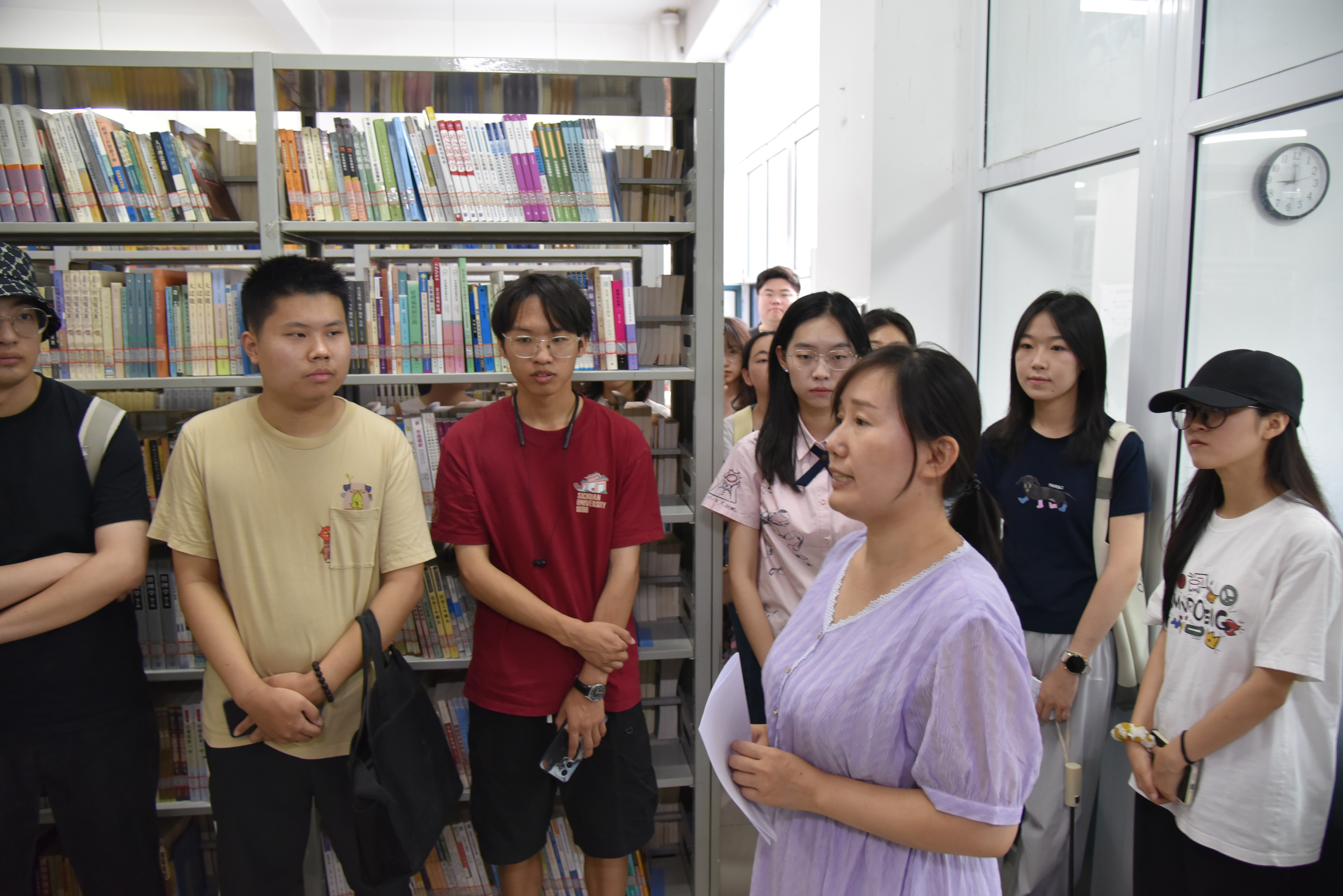 (崔爱红老师为同学们介绍公司资料室和中心资料室的藏书情况