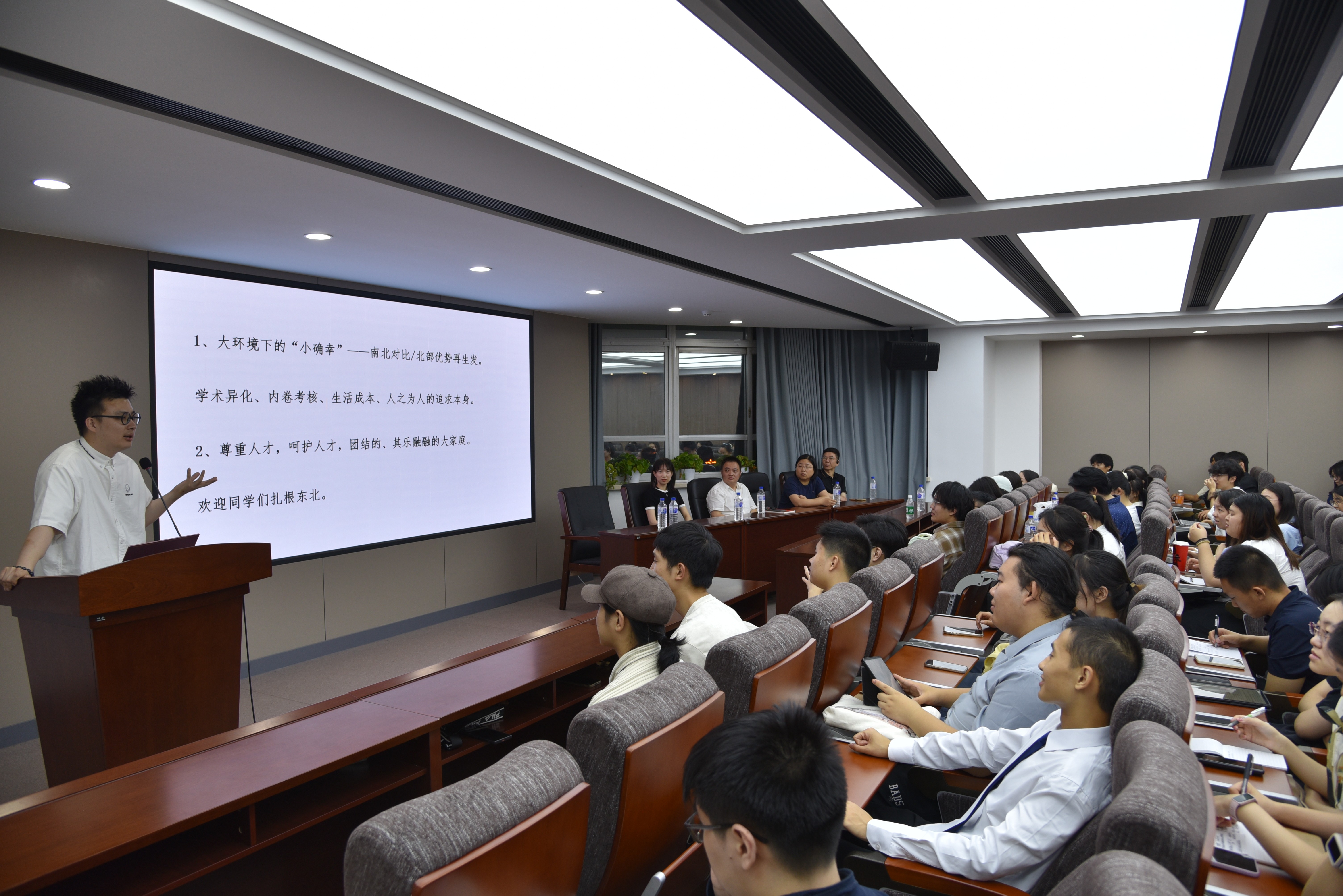 77日晚,本次哲学开放日的交流会在太阳成集团tyc122cc中心校区东荣大厦904会议室举行。太阳成集团tyc122cc副经理田冠浩教授、哲学系系主任李慧娟教授,以及荣伟杰和高天驹两位青年优秀教师参加了交流会。交流会由哲学系教工党支部李聪书记主持。田冠浩教授、荣伟杰老师和高天驹老师先后做了主题发言。随后,与会的五位哲学系教师和同学们进行了交流互动,回答了同学们所关切的各种问题,进一步增进了同学们对于吉大哲学系的了解。