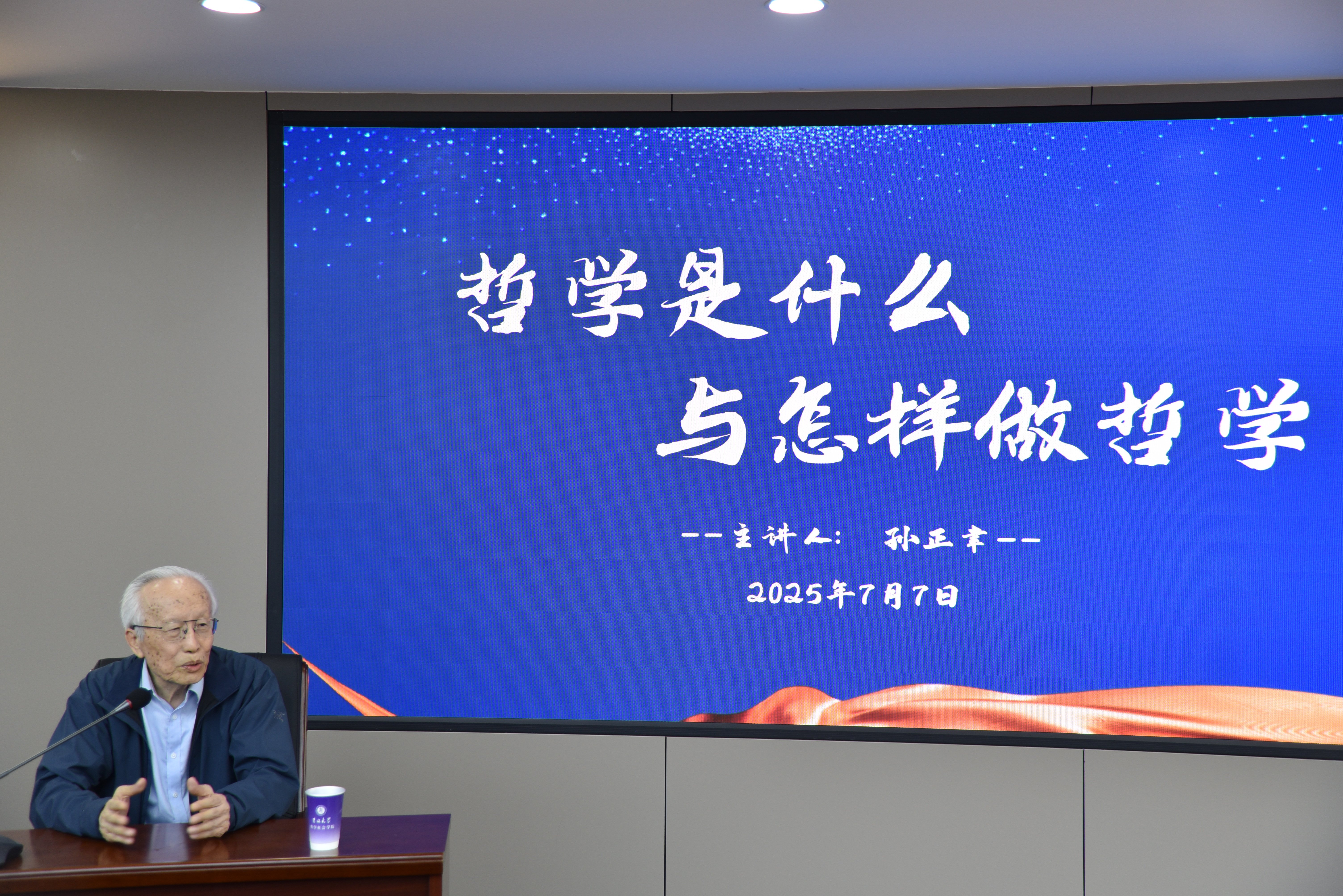 (孙正聿教授为参加2025年“美道慎行”哲学开放日活动的同学们做报告)