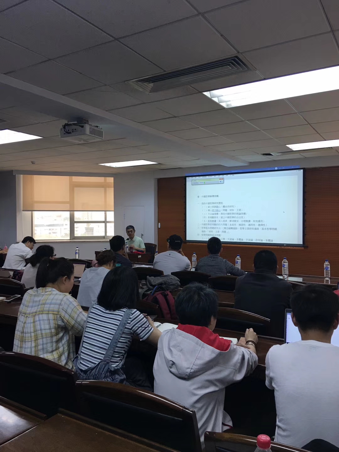 讲座分为三场进行。第一讲的主题为“中国哲学的解释架构”。杜教授从他的哲学研究进程引入,创造性提出问题意识,主张以问题为架构研究中国哲学,同时确立了中国哲学的合法性地位。他认为,中国哲学真理观的四大问题是:系统性、检证性、适用性、选择性。杜教授分别对宇宙论、本体论、工夫论、境界论、存有论的基本问题进行了详细的分析。