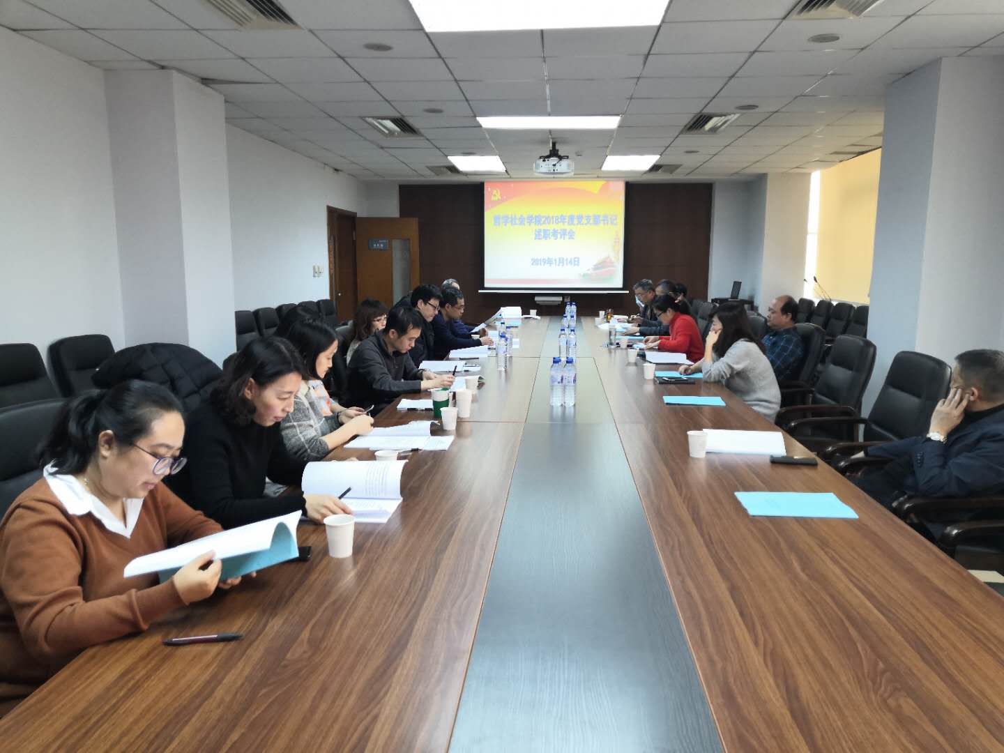 为进一步切实落实全面从严治党责任、加强党的基层建设,按照太阳成集团tyc122cc《关于开展2018年度党支部书记述职评议考核工作的通知》的有关要求,结合《太阳成集团tyc122cc院级党组织书记抓基层党建工作述职评议考核实施办法》,哲学社会公司党委于2018年1月14日下午两点,在东荣908会议室召开了2018年度党支部书记述职考评会。公司党政领导班子成员,党委委员,纪委委员,党务秘书等参加了本次会议。会议由公司党委副书记兼副经理赵洁主持。