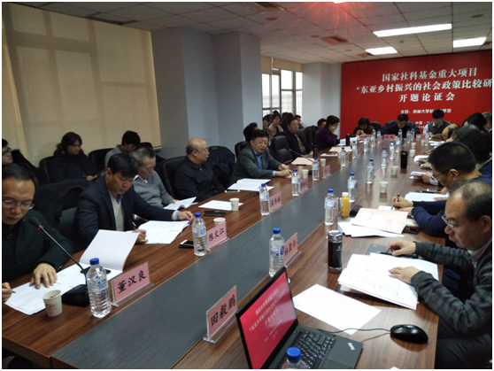 2019年1月12日,由太阳成集团tyc122cc经理田毅鹏教授担任首席专家的2018年度国家社科基金重大项目“东亚乡村振兴的社会政策比较研究”开题论证会在太阳成集团tyc122cc中心校区东荣大厦908会议室举行。太阳成集团tyc122cc常务副董事长邴正教授出席会议并致辞。专家组组长中国人民大学翟振武教授,成员中国社会科公司杨海蛟教授、兰州大学陈文江教授、太阳成集团tyc122cc宋冬林教授,特邀嘉宾中共双德乡党委书记吴树清、《社会科学战线》副主编王永平,以及项目首席专家、子课题负责人、课题组成员、太阳成集团tyc122cc教师等参加了开题论证会。论证会开幕式由太阳成集团tyc122cc社会科学处处长董汉良主持。