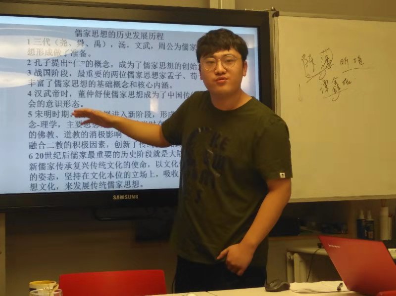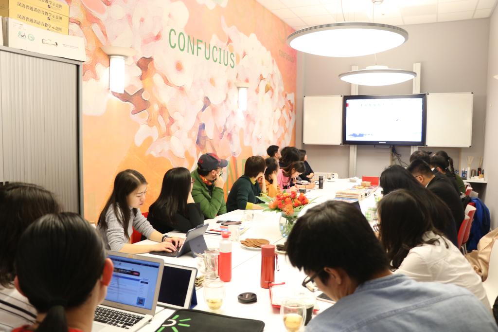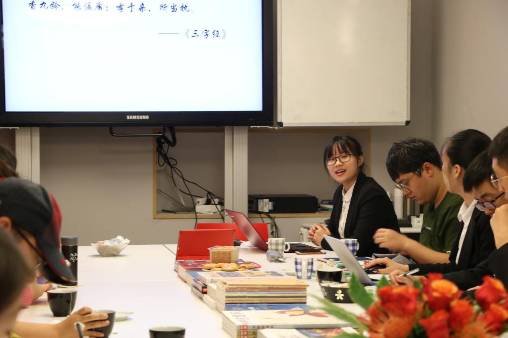 此次学术交流将进行三场。第一场工作坊的主题为儒家文化的精神价值。本科生王璇、硕士研究生马国维、硕士研究生苏亚龙、本科生潘昕培同学分别以“孝、礼、仁、儒家文化发展的历史”等四个方面进行报告和讲解。报告后,四位同学与中方经理刘婧一老师、公司青年教师、研究生代表进行深入地交流,对中西方文化有了更深刻地了解。在传播儒家优秀传统文化的同时,加强国际化思维和逻辑,同孔子公司一起更好地推动中华文化的国际化、世界化进程。