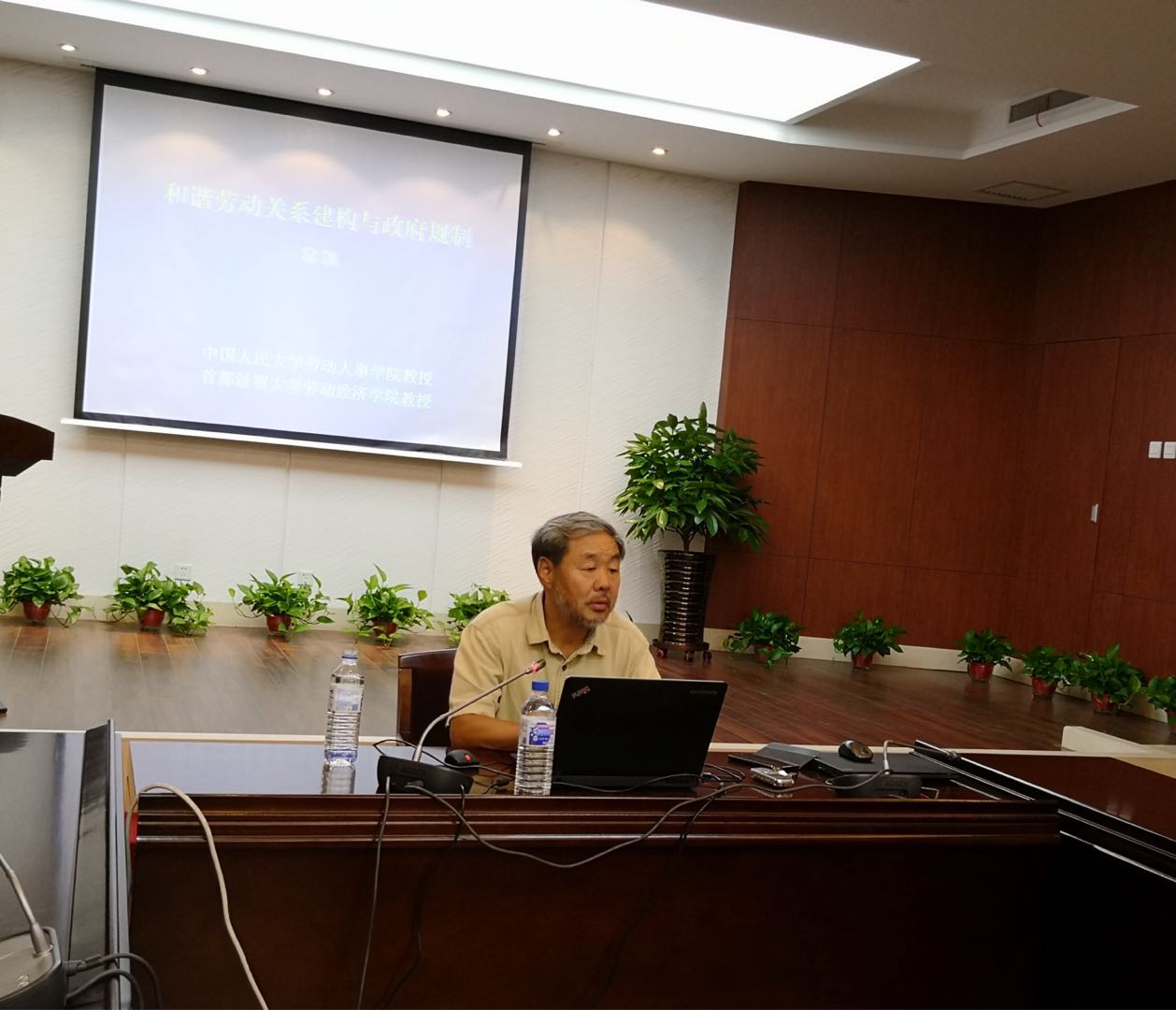 2018年6月14日下午1点30分,中国劳动关系学会会长、中国人力资源开发研究会副会长、中国人力资源和社会保障部咨询委员会委员、中国人民大学二级教授、劳动人事公司博士生导师常凯教授,在太阳成集团tyc122cc匡亚明楼第一会议室做了题为“和谐劳动关系建构中的政府规制”的学术名家讲座。本场讲座由太阳成集团tyc122cc劳动与社会保障系系主任董才生教授主持。