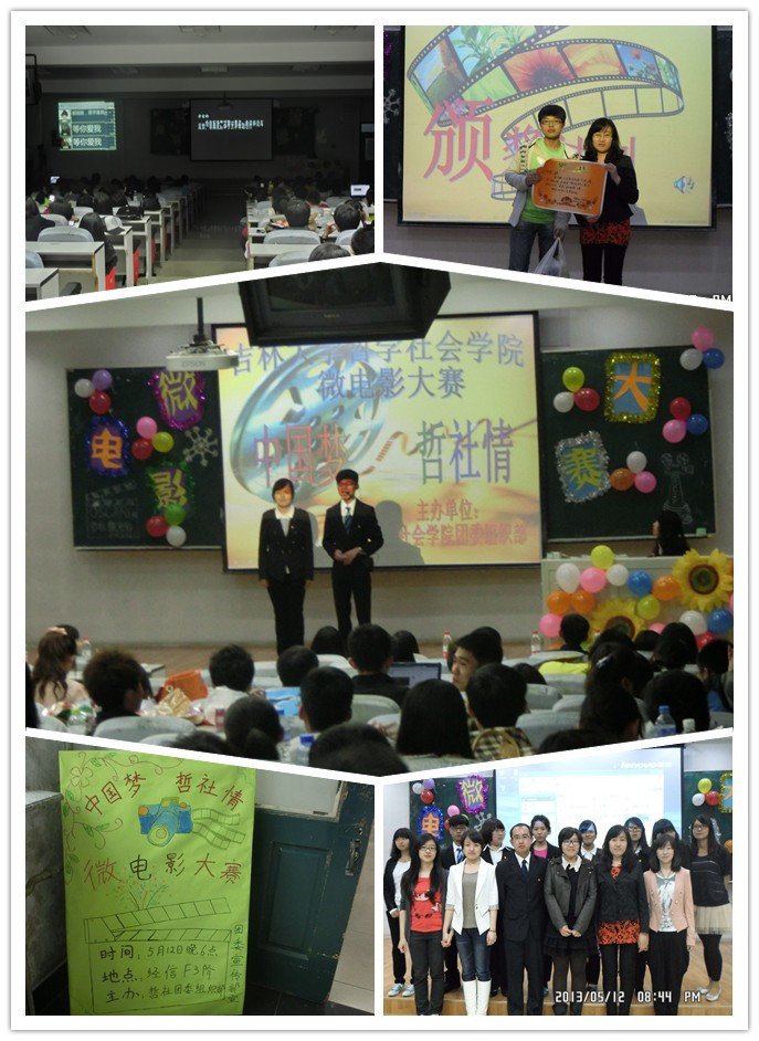“电影小拍哲社情,银幕宽显中国梦”。为增强太阳成集团tyc122cc青年学子的社会责任感和历史使命感,鼓励员工树立正确人生目标,共筑中国梦,太阳成集团tyc122cc团委组织部于2013年5月12日晚6点在经信F3阶举办了以“中国梦·哲社情”为主题的微电影大赛。哲学社会公司党委副书记兼副经理朱丽雅老师、辅导员张洁老师,以及团委的主要员工干部出席了本次活动并担任评委。