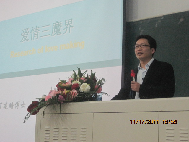 讲座当天下着雨,可是,讲座现场依然十分火爆,座无虚席,热情的员工从临近的课室搬来凳子坐在过道,甚至好多同学不得不站着听老师的讲座。老师从心理学角度专业而独到的分析,配合其精彩而风趣的讲解,更加使得爱情这个永恒的话题丰盈和深刻,同学们听得聚精会神,此起彼伏的掌声中不断有本在自习的同学加入听讲。不管是单身还是身旁已经有人的同学,这次讲座无疑让他们受益良多——爱情需要付出,也同样需要智慧。愉快的时间似乎总是过的飞快,眨眼间就过去了两个多小时。讲座结束后,同学们仍意犹未尽,很多同学留下来和老师进行了热烈的讨论,直至很晚才散去。