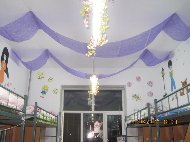 此次寝室文化节采取男女互评方式。经过生管会成员的悉心准备及合理安排,本次活动顺利有序地展开。各个寝室的风格大不相同:复古风、浪漫风、甜美风和毕加索风等。在生管会成员的引领下,同学们拜访了拨琴弄弦的艺术天堂,走进了灯光闪闪的浪漫世界,穿越到西装旗袍的民国社会,现身在树木苍翠的原始森林……男女寝室,风格各异。兄弟情在蓝绿黑的映衬下更显深沉,姐妹情在粉紫色的纱缦下尤为温馨。各个富有创新性的寝室,充分体现了同学们的积极参与的态度,以及对寝室和生活的热爱。