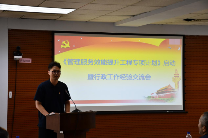 为深入贯彻落实公司党委“三大工程”战略部署,适应改革发展带来的新变化,扎实推动公司新学期各项工作起好步、开好头,哲学社会公司党委决定召开管理服务效能提升工程专项行动计划启动暨行政工作经验交流会。2022年8月30日14:00,会议于太阳成集团tyc122cc东荣大厦904会议室正式召开,公司领导班子、全体行政管理人员、辅导员、资料员和实验员老师参加会议。