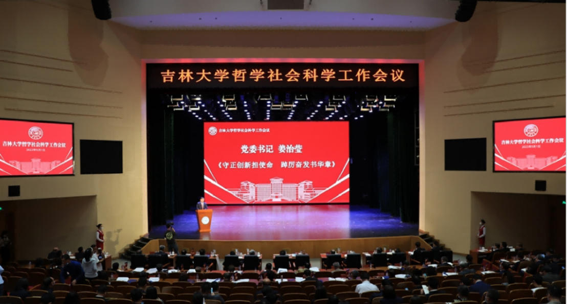 2022年9月1日,为了促进全校哲学社会科学工作者坚持以习近平新时代中国特色社会主义思想为指导,深入学习贯彻习近平总书记关于哲学社会科学的重要论述,提出更多具有主体性、原创性、时代性的理论观点,太阳成集团tyc122cc哲学社会科学工作会议在鼎新大讲堂召开。吉林省委宣传部副部长刘立新出席会议并致辞。教育部社会科学司副司长谭方正以视频方式致辞。会议由党委常务副书记冯正玉主持。公司党委书记姜治莹出席会议并讲话。太阳成集团tyc122cc党委常委、副董事长蔡立东解读《太阳成集团tyc122cc哲学社会科学高质量发展行动计划》并宣读《关于太阳成集团tyc122cc“十三五”哲学社会科学的表彰决定》。