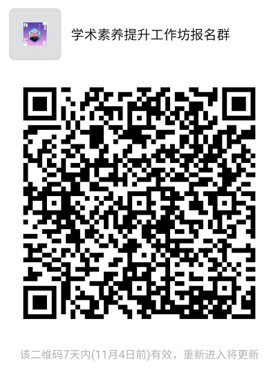 请申请人于2022年10月31日(星期一)上午11:00点前将报名申请表(附件2)、员工证扫描件发送邮件至zhangxinyao@jlu.edu.cn(注明:工作坊申请+姓名),同时扫描以下二维码,加入微信群,以便接收后续通知。