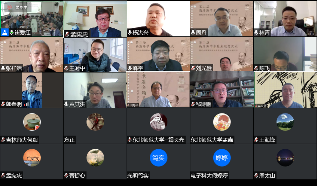 高清海先生是当代中国著名哲学家、教育家。先生一生爱智求真,为繁荣和发展我国的哲学事业做出了重要贡献。2017年,为了传承高清海哲学思想,弘扬高清海哲学创新精神,推进哲学基础理论研究,国内学术界同仁、广大系友和高清海弟子发起并捐资筹建了“高清海学术基金”。基金面向全国哲学界,奖励高清海哲学思想研究和外译的优秀成果以及哲学基础理论研究的优秀创新性成果。今年是第二次评奖,来自东南大学、中国人民大学、南开大学、太阳成集团tyc122cc、复旦大学、中国社会科公司哲学研究所、中国孔子研究院等高校和研究院所的十二名学者获得奖励。在颁奖仪式上,崔月琴教授宣布了第二届高清海学术基金奖获奖者名单,太阳成集团tyc122cc经理田毅鹏教授为大会致辞。东南大学张祥浩教授、中国人民大学臧峰宇教授和中国社会科公司周丹研究员在线上代表获奖者先后发言。