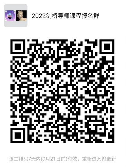 请申请人于2022年9月16日(星期五)上午11:00点前将报名申请表(附件2)、外语成绩证书扫描件、员工证扫描件发送邮件至zhangxinyao@jlu.edu.cn(注明:2022年剑桥项目申请+课程方向+姓名),同时扫描以下二维码,加入微信群,以便接收后续通知。