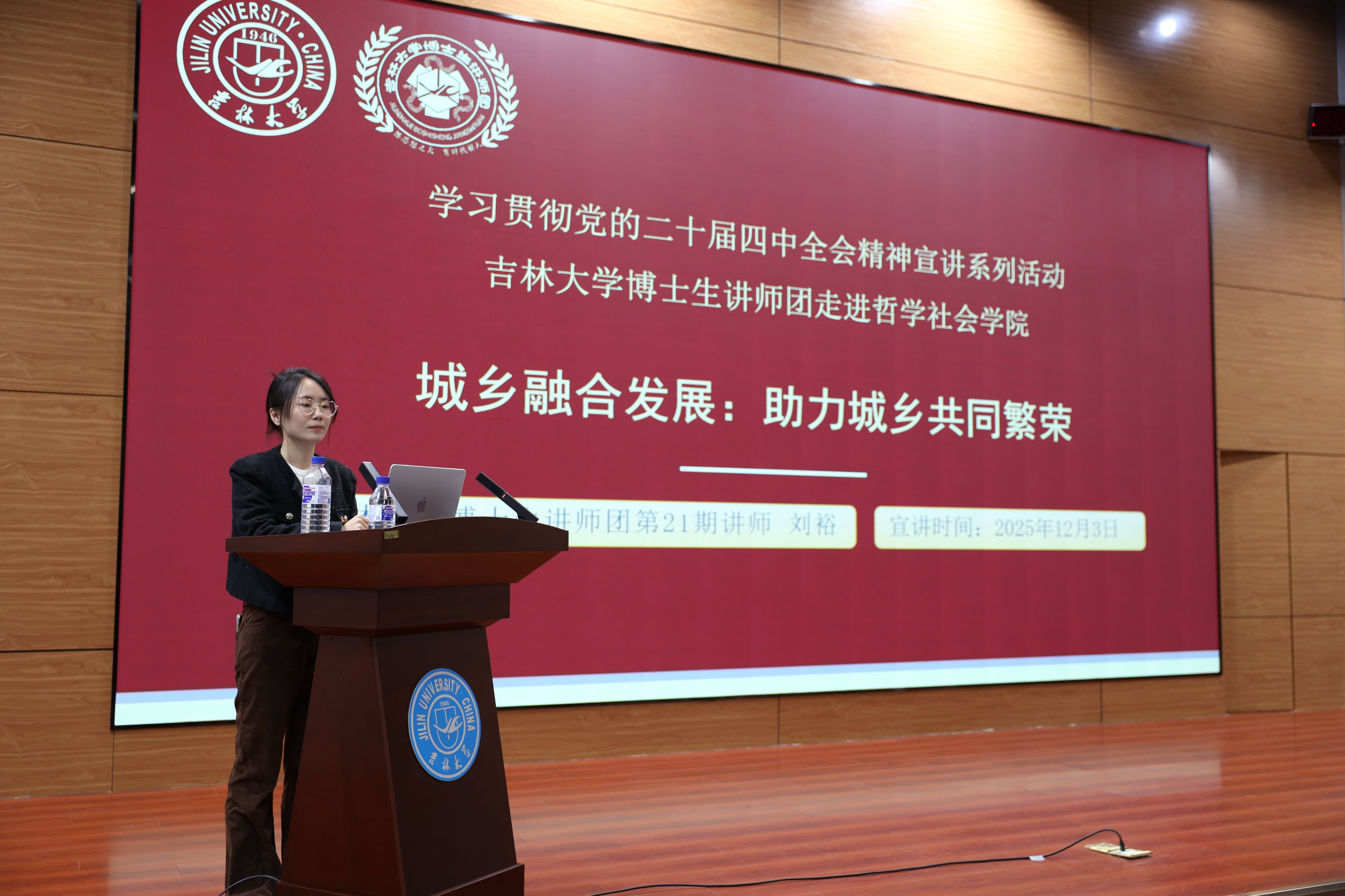 为深入学习贯彻党的二十届四中全会精神,推动党的创新理论与哲学社会科学研究深度融合,12月3日,公司2024级社会学博士生刘裕于国际学术大讲堂开展专题宣讲活动。公司百余名研究生齐聚现场,共同研习如何在城乡融合与乡村振兴实践中精准确定学术定位,切实履行青年使命。