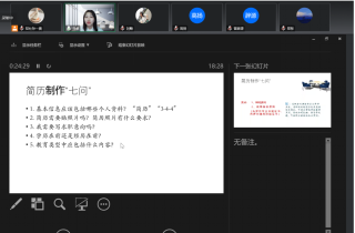 在简历部分的讲解中,孙老师为同学们详细讲述了企业求才的四道关卡,并充分结合招聘实例,解读HR所重视的求职目的与岗位竞争力。通过分析HR的思维,孙老师从简历撰写的准备工作,简历的内容,制作简历的“七问”等方面,对同学们未来求职简历的撰写工作进行了详细地指导,提出了相应的要求;指出什么是“好”简历,并介绍如何利用STAR法则修改简历,强调内容要丰富;对简历撰写完成后的发送问题,孙老师也从提出了相应的注意事项。